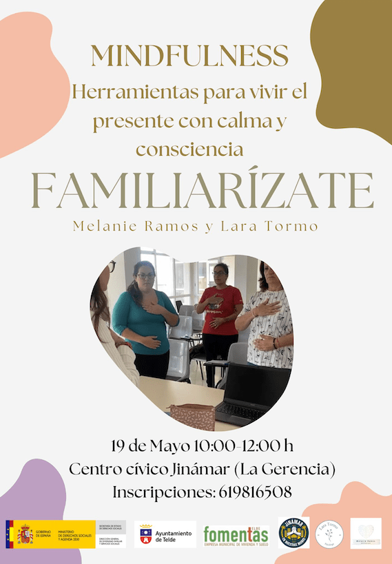 El Ayuntamiento de Telde, a través del Plan Integral de Jinámar y en colaboración con el proyecto Familiarízate, organiza el próximo viernes un taller de Mindfulness para aprender herramientas para vivir con consciencia plena, disfrutando y sintiendo cada momento del día a día, además de utilizar el propio cuerpo para autorregularse y calmar la ansiedad.
