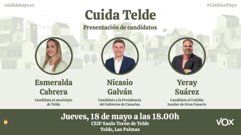 El acto electoral estaba prevista la intervención de la candidata a la Alcaldía de Telde, Esmeralda Cabrera; Nicasio Galván, aspirante a la Presidente del Gobierno de Canarias, y Yeray Suárez, número uno de la lista al Cabildo de Gran Canaria.