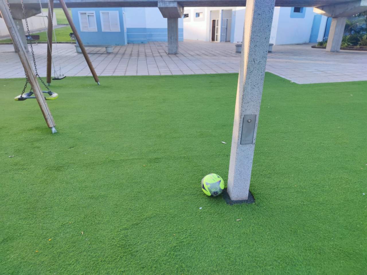 Buenas tardes. Mi hijo ha vuelto a darse otro golpe contra una de estas columnas en el parque de La Barranquera. En esta ocasión, por suerte, no hay herida abierta como la última vez. Tan difícil es quitar de en medio esas peligrosas columnas y poner el alumbrado en la zona perimetral fuera de la zona de juegos de los niños. Contacto con el 112 para solicitarles información sobre la actuación a seguir y me informan que el procedimiento debe de ser ir a la Policía Local, hacer la correspondiente denuncia y que ellos la trasladen a urbanismo. Mientras tanto a seguir los niños dándose golpes.