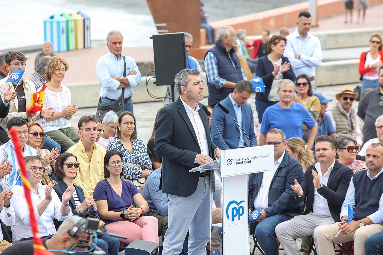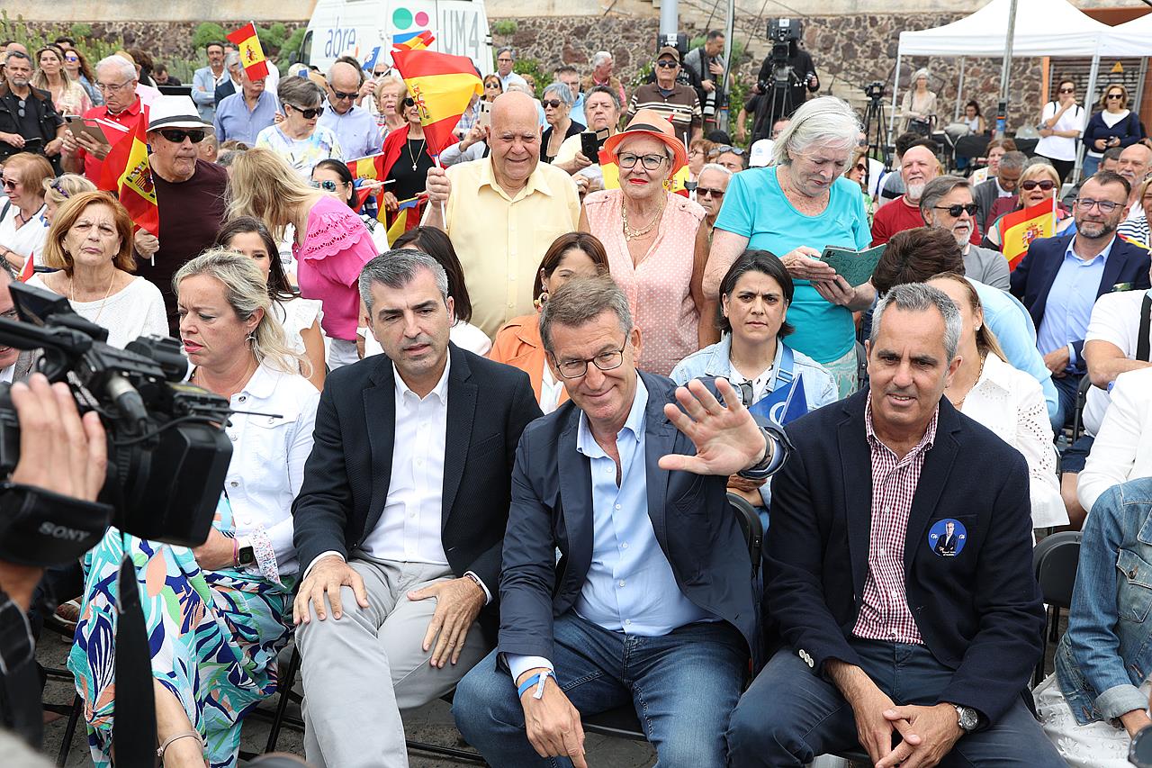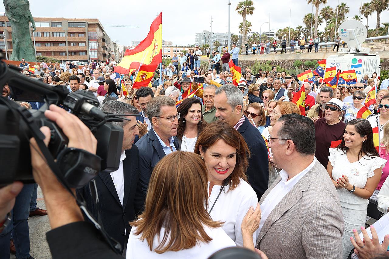 En un mitin celebrado en la capital grancanaria este lunes en presencia del presidente de su partido, Alberto Núñez Fiejóo, los candidatos del PP al Gobierno de Canarias y la Alcaldía de Las Palmas de Gran Canaria, Manuel Domínguez y Jimena Delgado, han vaticinado su victoria en las urnas el próximo domingo. Al acto electoral asistió una amplia representación del PP teldense encabezada por su candidato a la Alcaldía, Sergio Ramos Acosta.