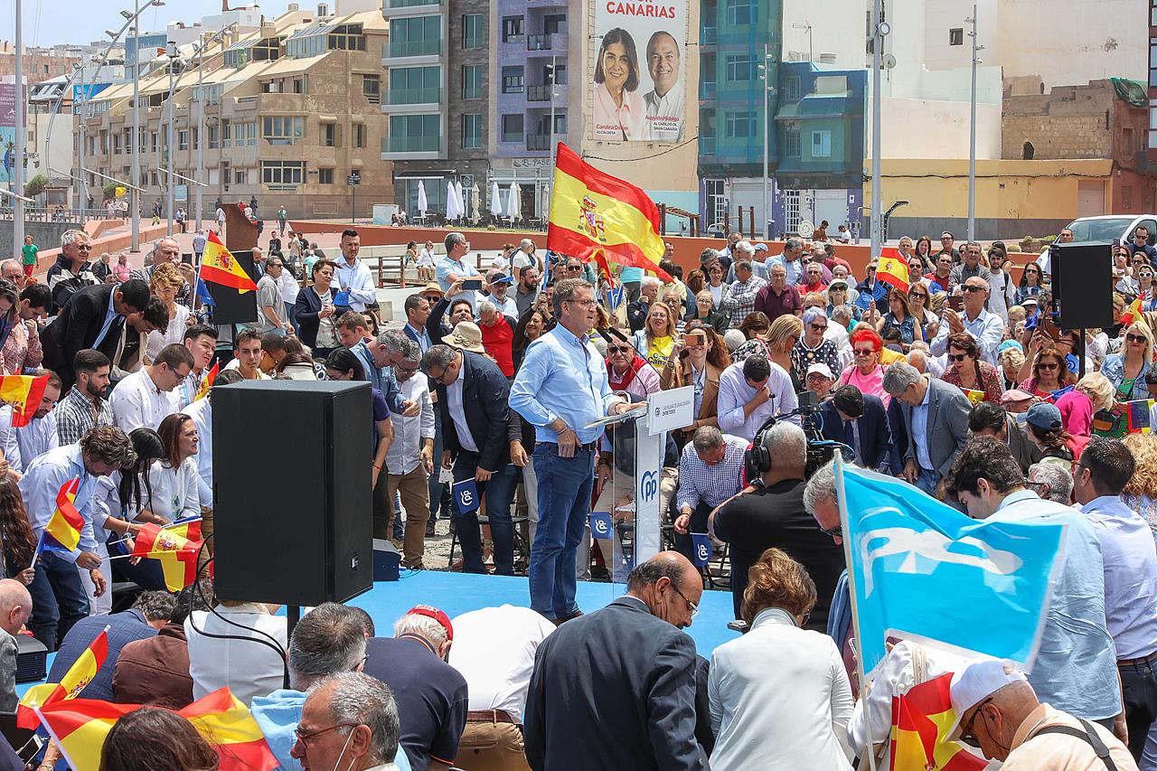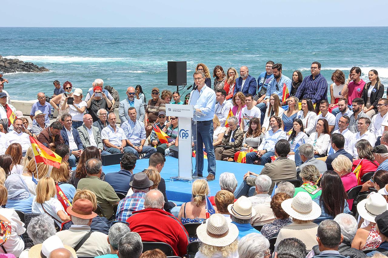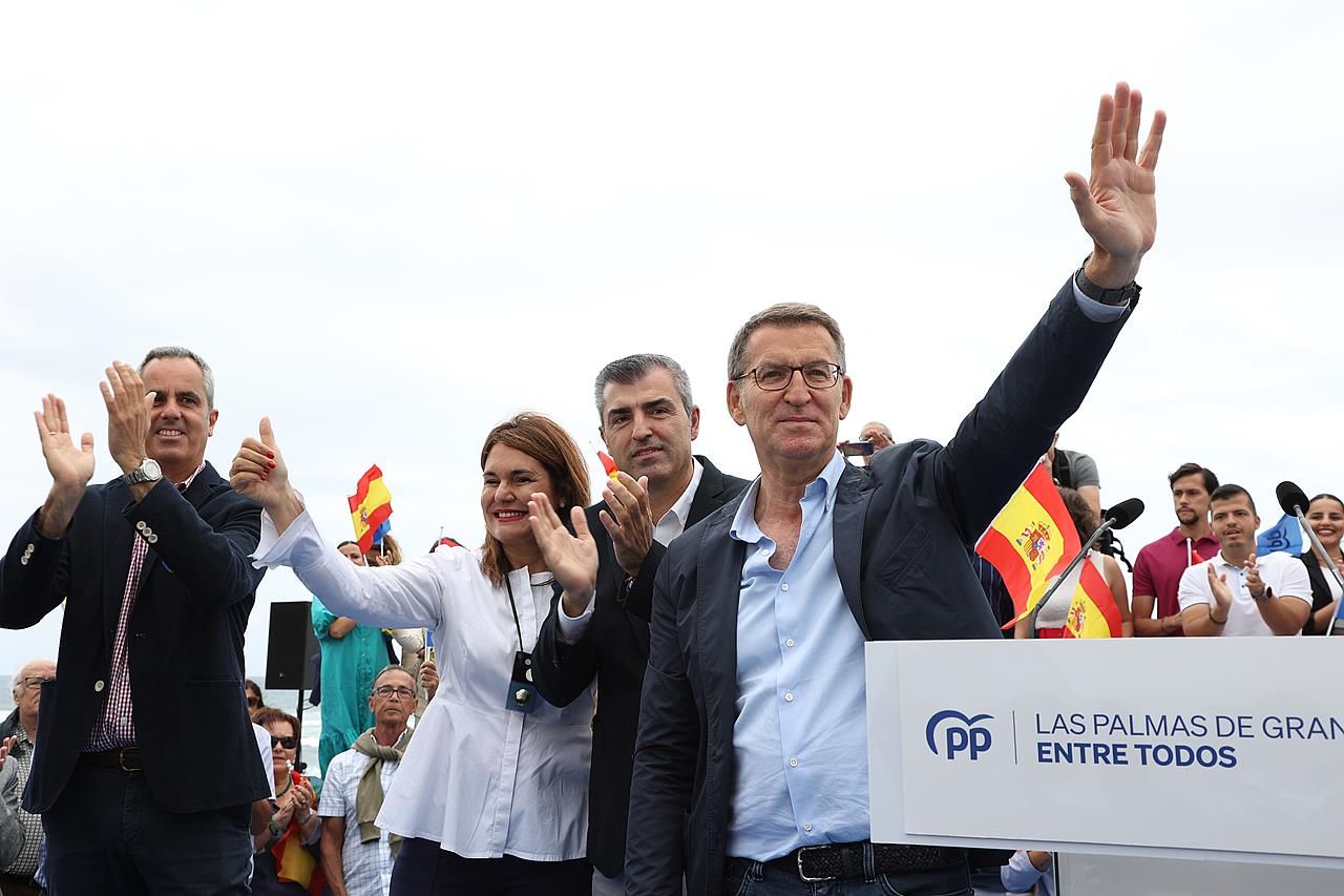 Durante un mitin de su partido en Las Palmas de Gran Canaria, Feijóo ha pedido a las personas desencantadas con la gestión del Gobierno de coalición que le den la espalda al "sanchismo" en las urnas el próximo 28 de mayo, porque el PP, ha dicho, "está tocando el cambio con las manos".