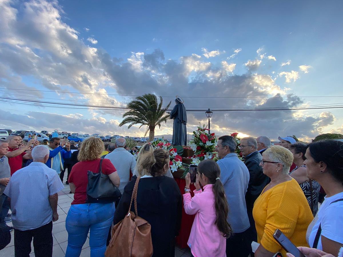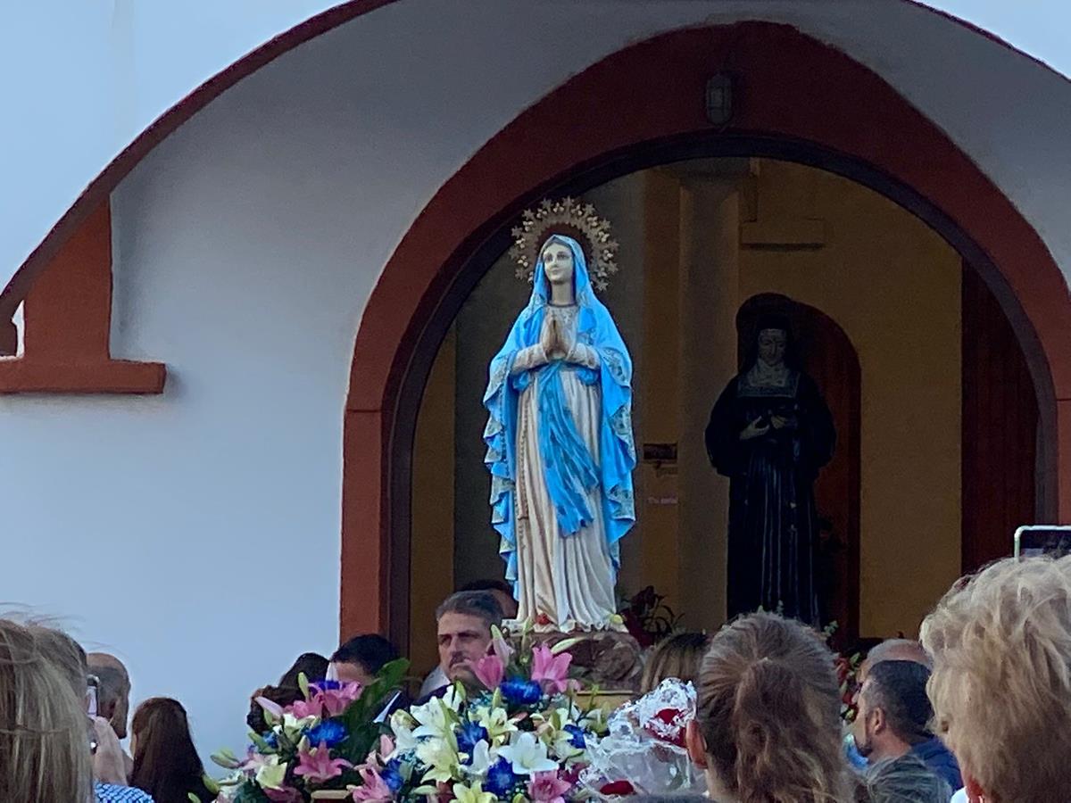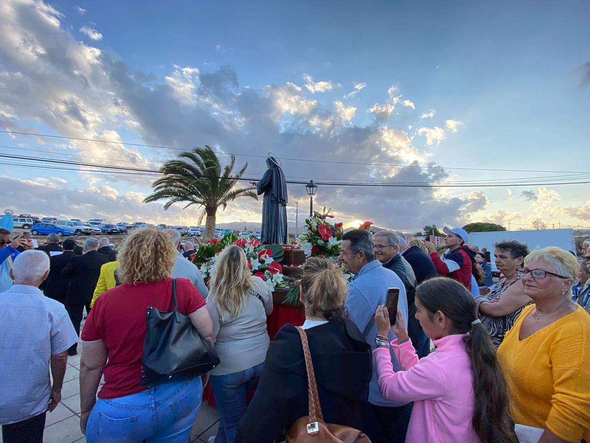 La procesión salió de la ermita tras la misa oficiada por el párroco Benjamín Ramírez a partir de las 19.00 horas. La salida del trono fue saluda con el lanzamiento de pétalos de flores y traca de voladores.