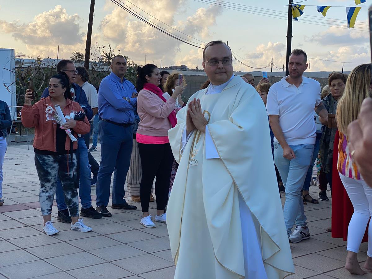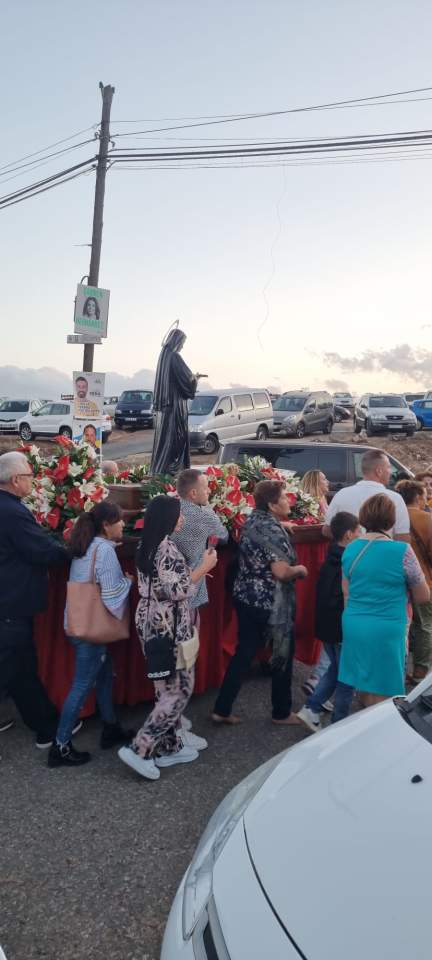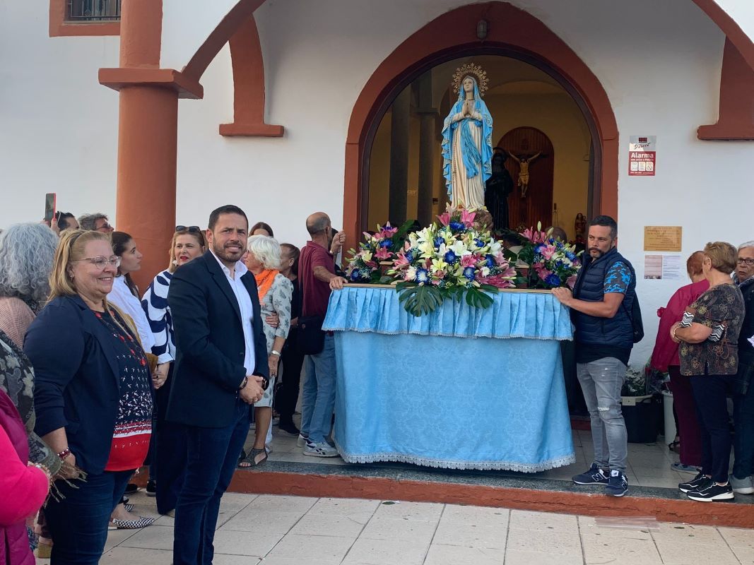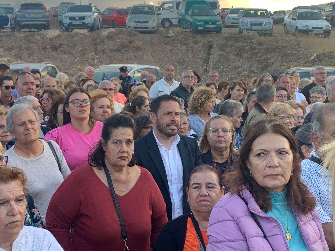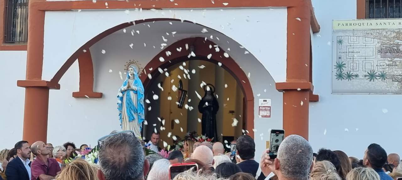 La procesión salió de la ermita tras la misa oficiada por el párroco Benjamín Ramírez a partir de las 19.00 horas. La salida del trono fue saluda con el lanzamiento de pétalos de flores y traca de voladores.