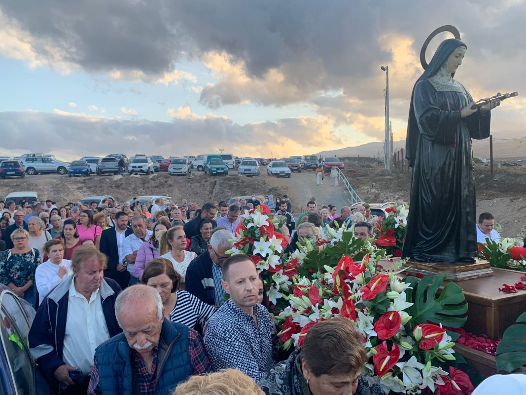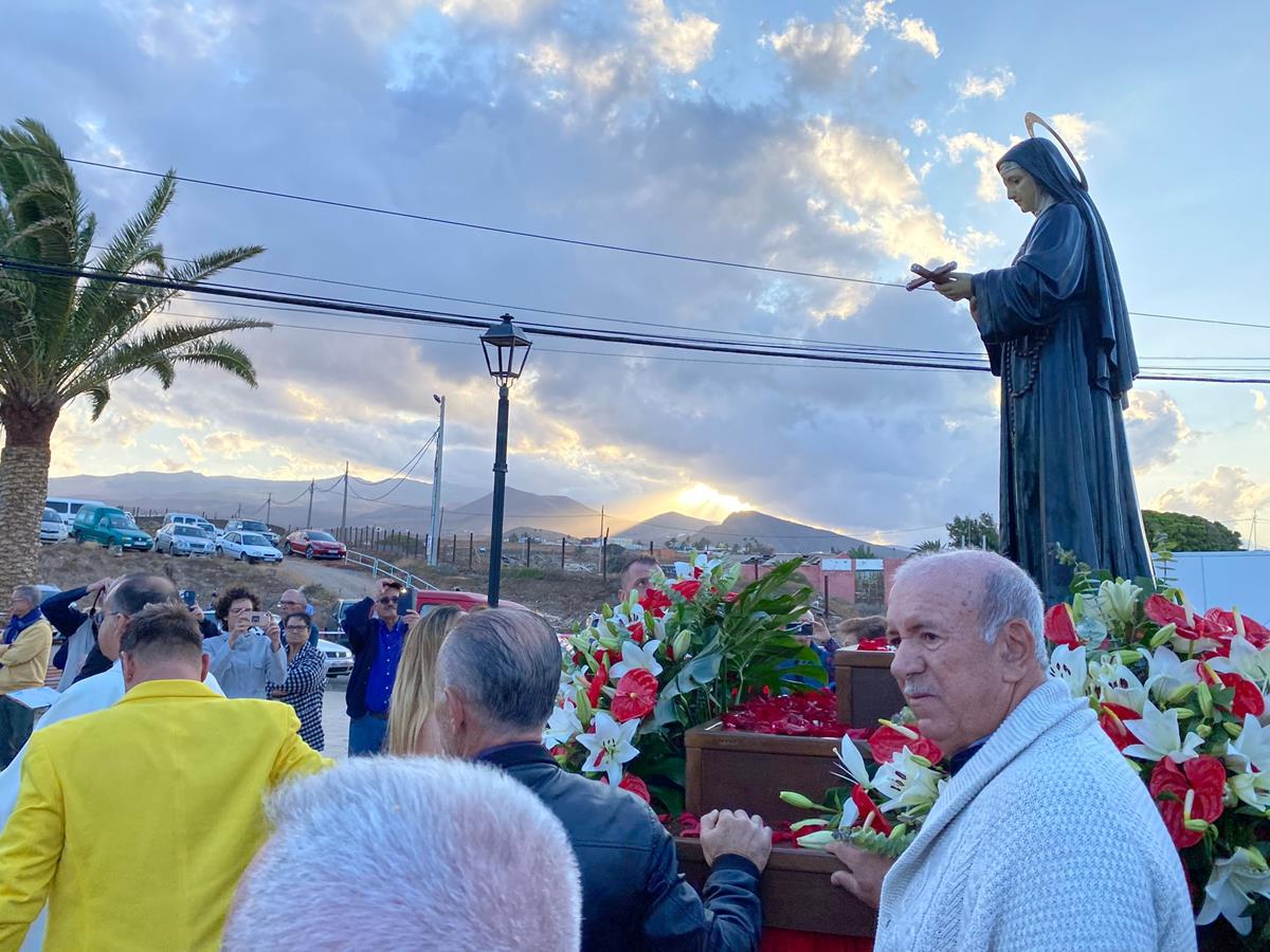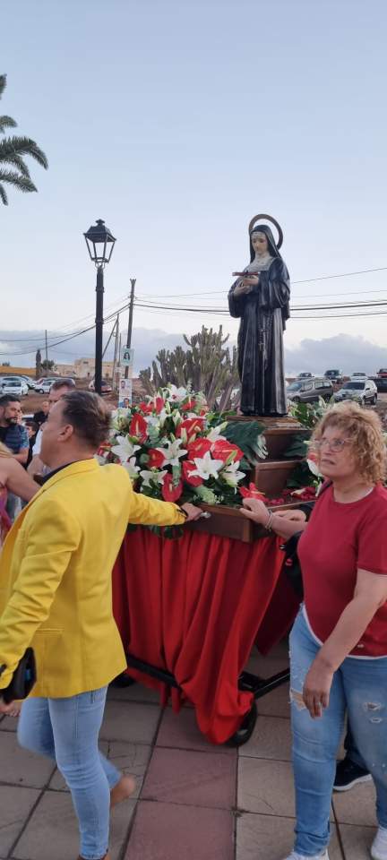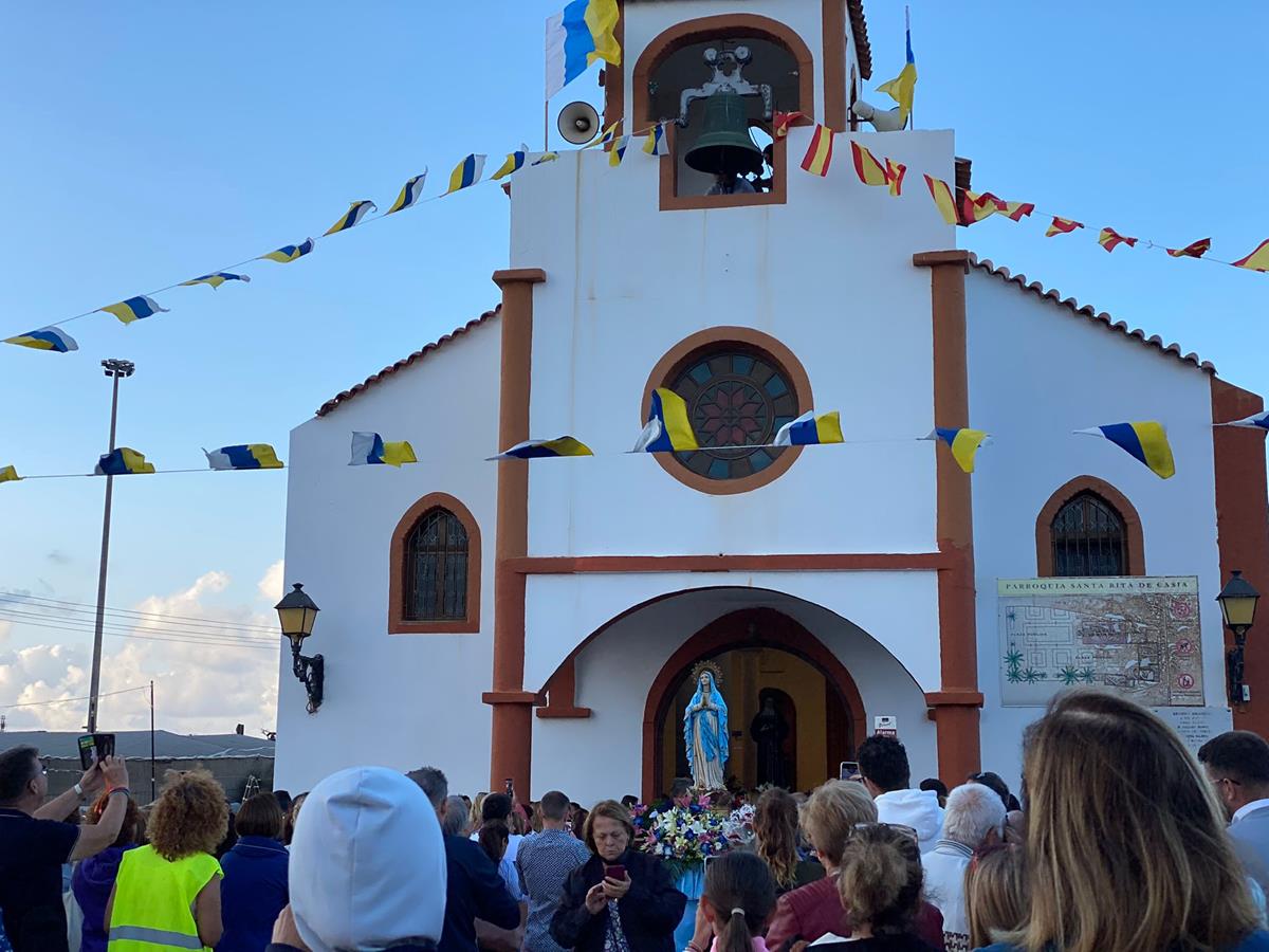 El núcleo poblacional de Ojos de Garza festejó el día grande de su patrona, Santa Rita de Casia, con una procesión del trono de la imagen religiosa que partió del templo y realizó el recorrido de costumbre con el acompañamiento de feligreses, Banda Municipal de Música y ediles del Ayuntamiento de Telde.