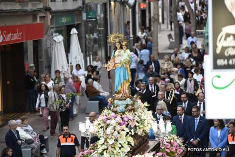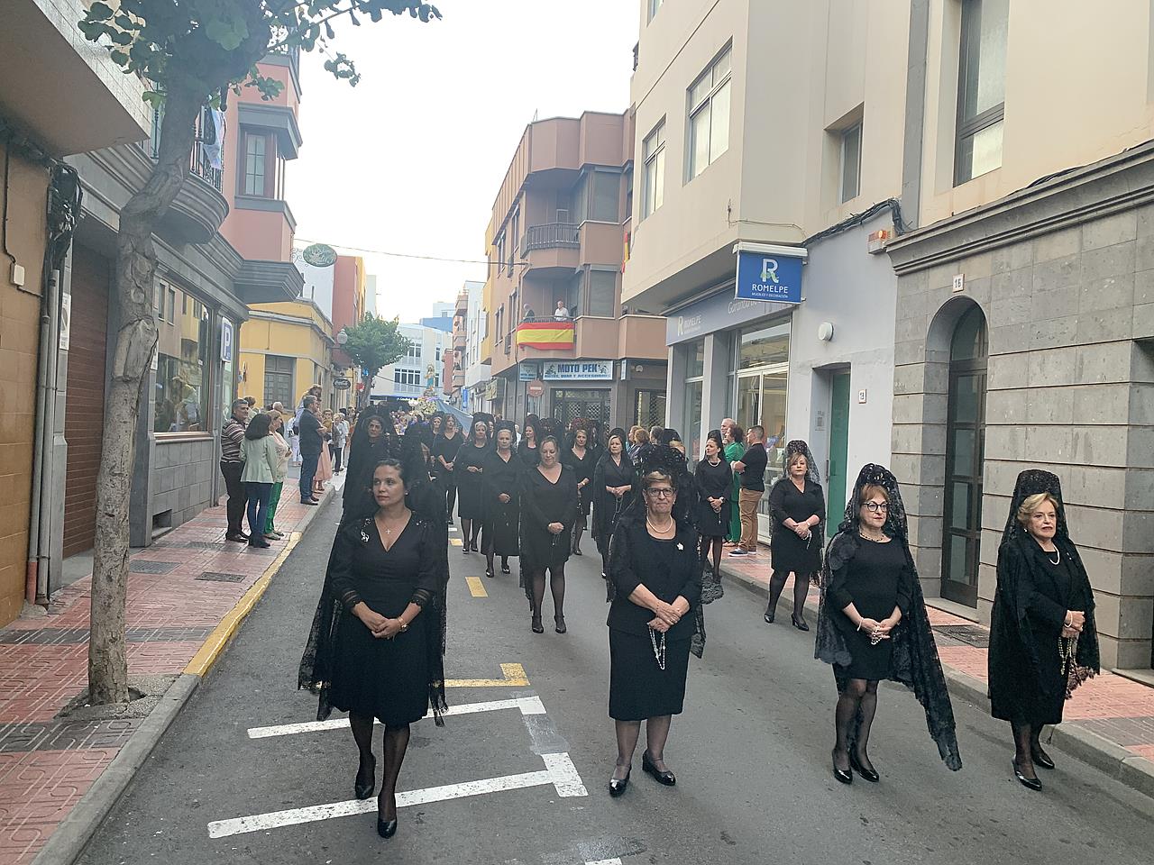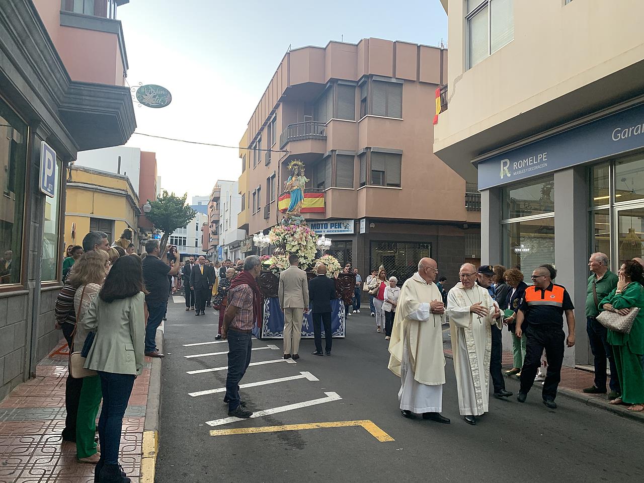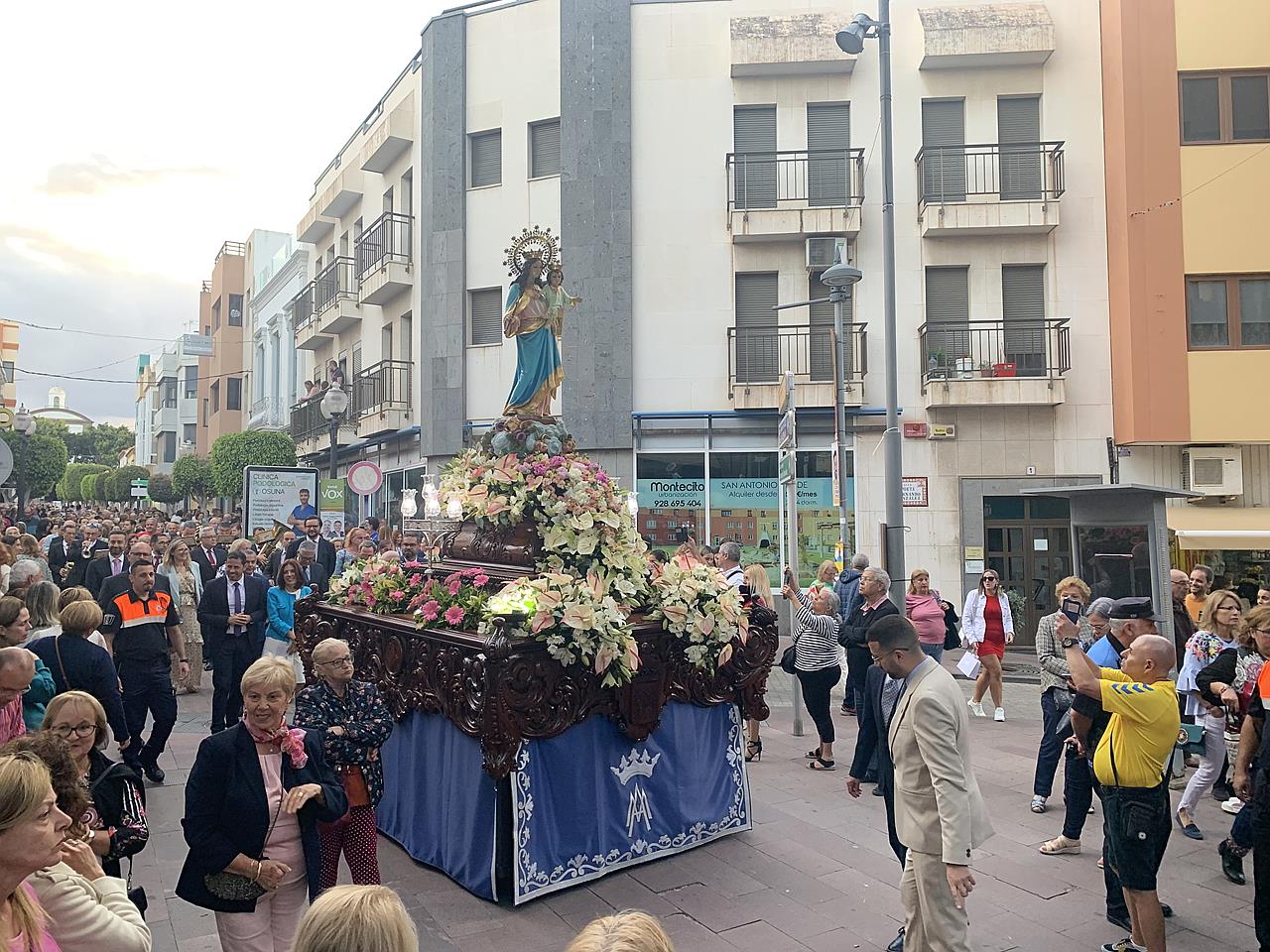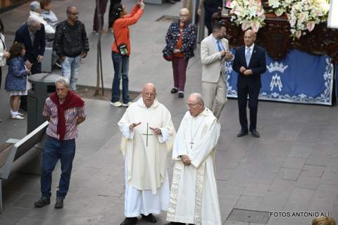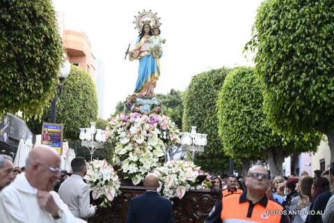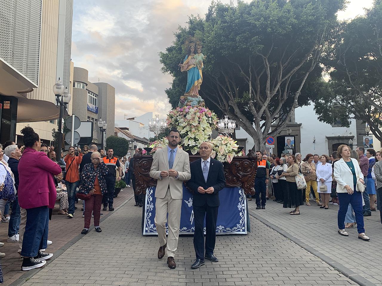Telde rindió honores esta tarde-noche a María Auxiliadora, en el día de su festividad,  con una misa y posterior procesión de su trono, bellamente engalanado, por las calles de la zona comercial de la ciudad en su habitual recorrido entre el templo de San Gregorio y el patio del colegio salesiano.
