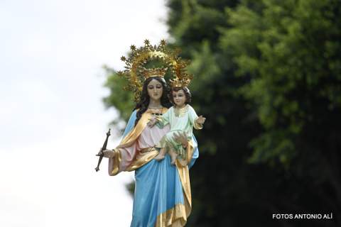 La procesión de María Auxiliadora vuelve a llenar de fervor las calles de Los Llanos
