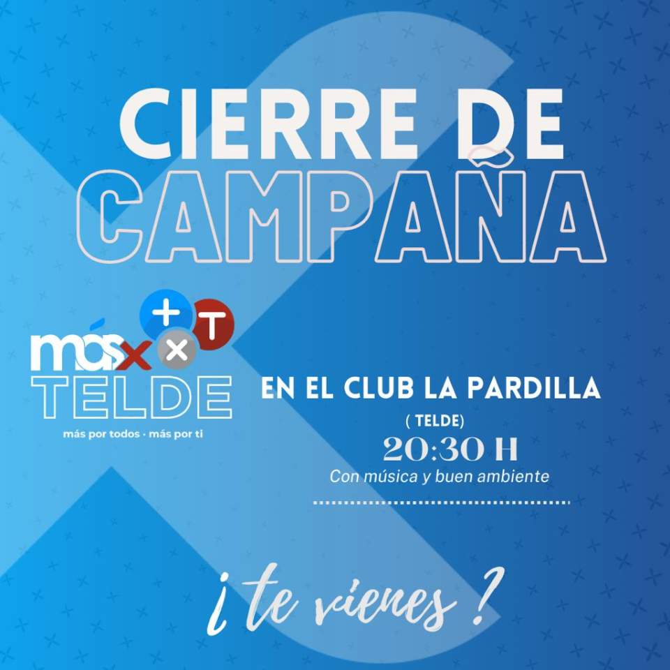 Más por Telde, la plataforma política – ciudadana que lidera Juan Francisco Artiles, invita a todos sus afiliados, simpatizantes y colaboradores a la fiesta de fin de campaña. El evento comenzará a partir de las 20.30 horas en las instalaciones deportivas del Club La Pardilla.