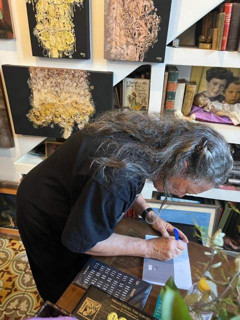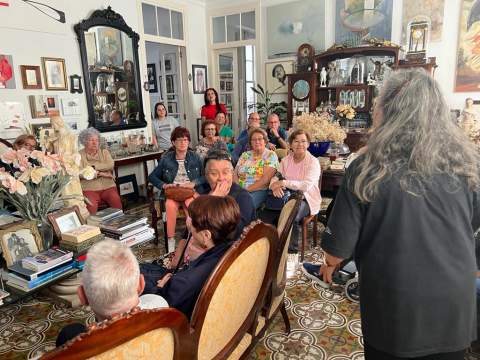 La escritora y editora palmera recibió a la expedición en su domicilio de Santa Cruz de la Palma y durante toda la tarde el alumnado intercambió impresiones sobre el libro "El viaje" que formó parte de un congreso denominado "Jóvenes lectores", además de interesarse por su obra.