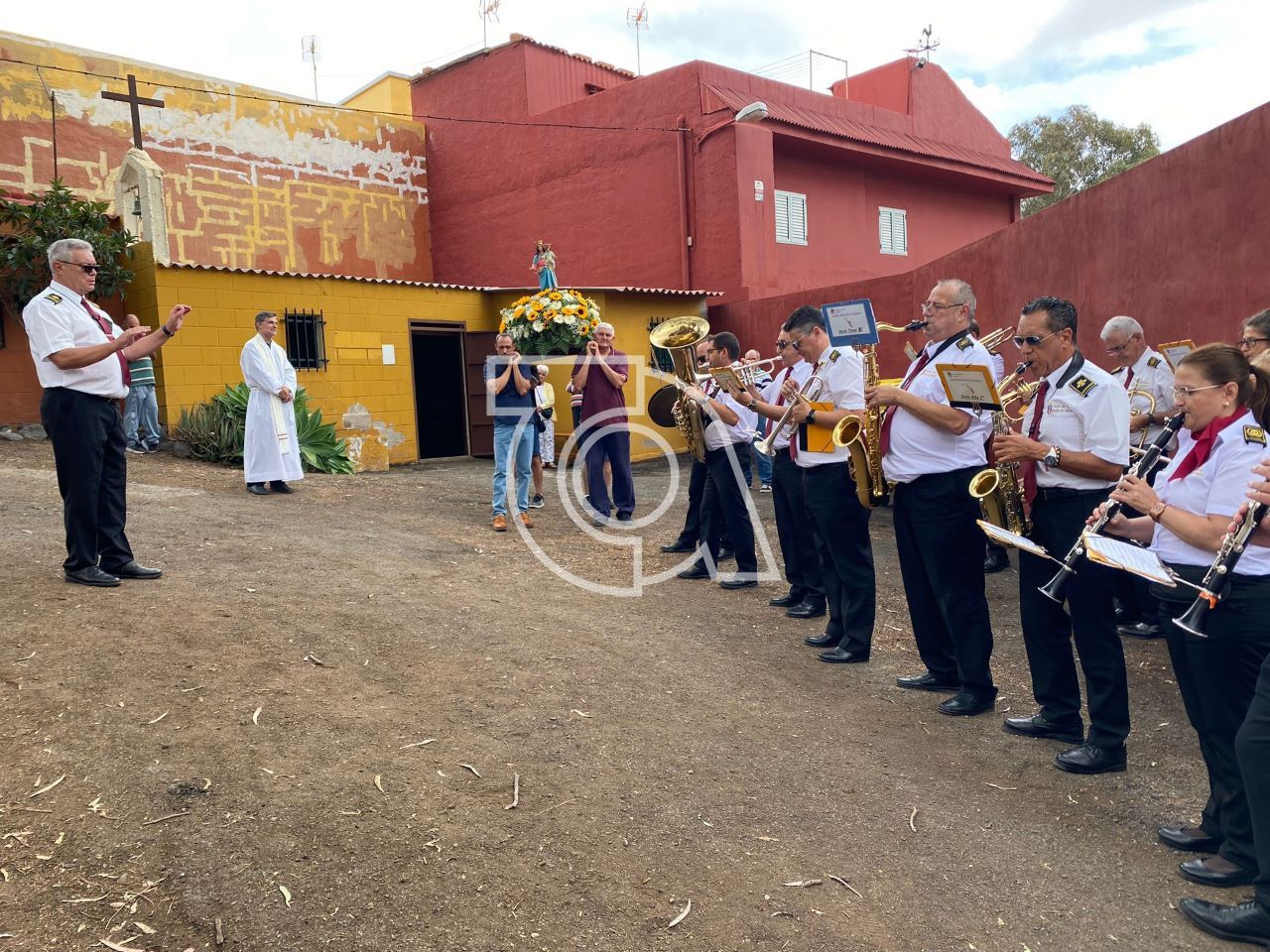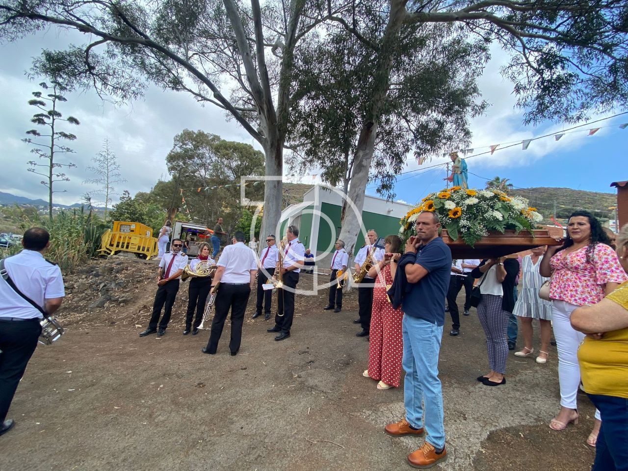 El cortejo religioso estuvo acompañado por feligreses y autoridades públicas, entre las que se encontraban los ediles Álvaro Monzón (Telde) y Natalia Ramírez (Valsequillo). La música la puso la Banda Municipal de Telde, dirigida por José Martel.