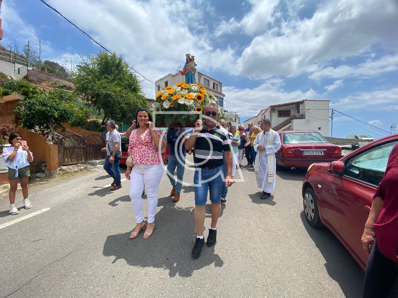 El pequeño núcleo poblacional de Tecén, fronterizo entre los municipios de Telde y Valsequillo, procesionó este domingo al mediodía a su patrona, María Auxiliadora, por sus calles después de la misa oficiada por el párroco de la zona, Ricardo Miranda.