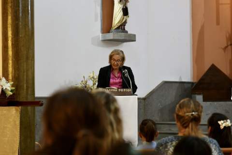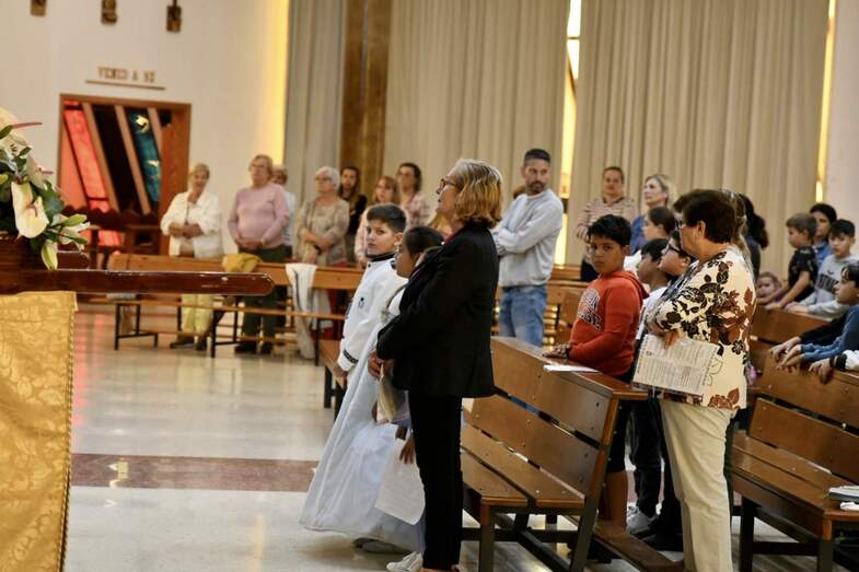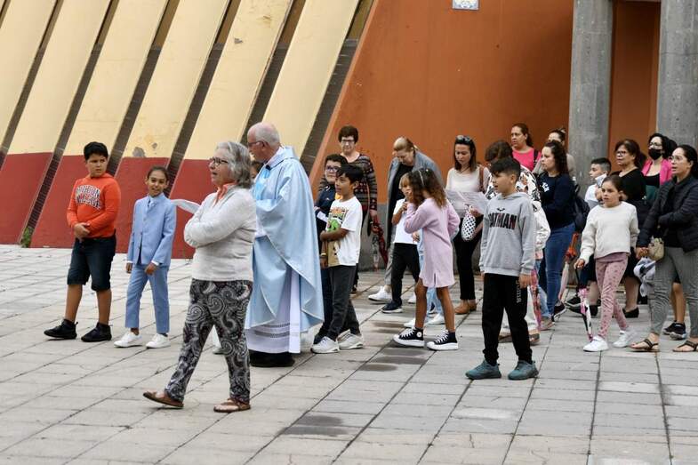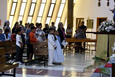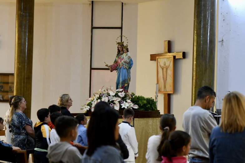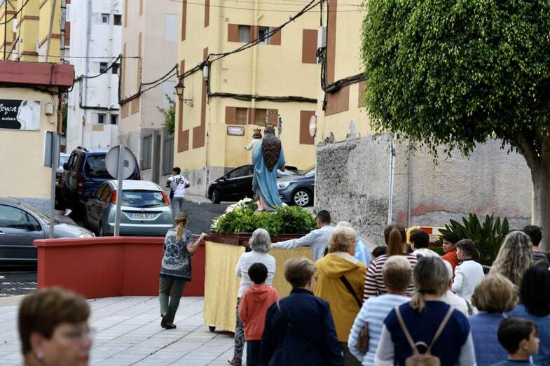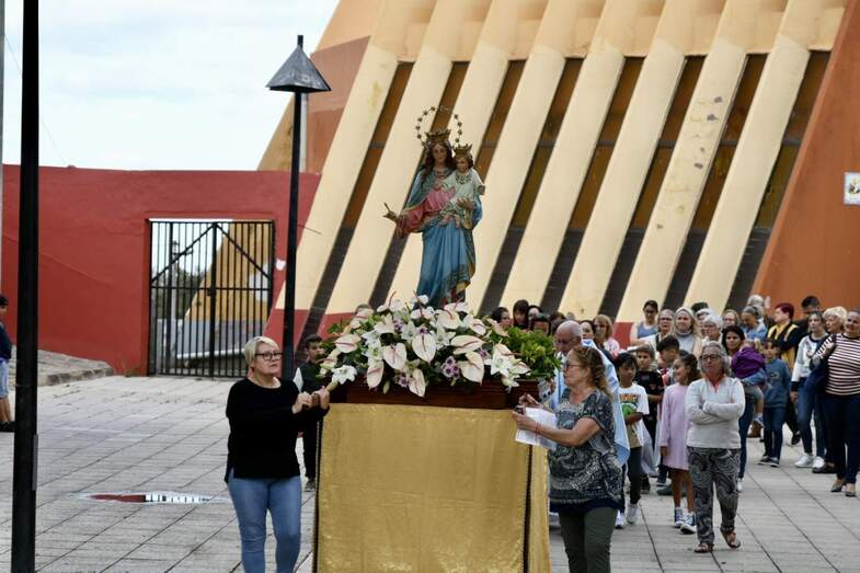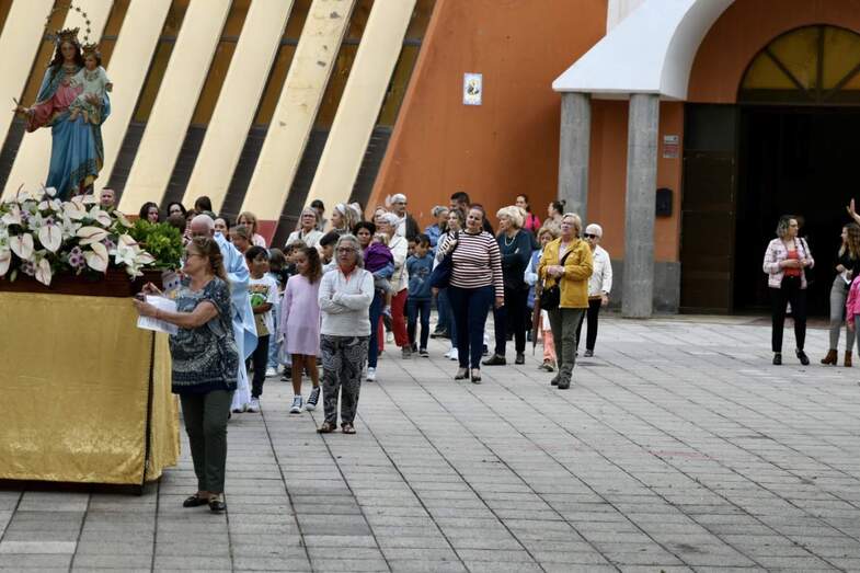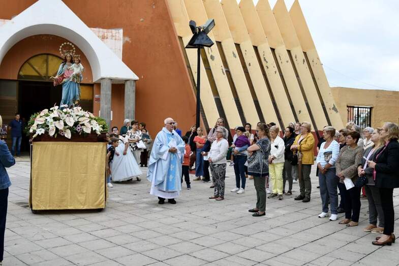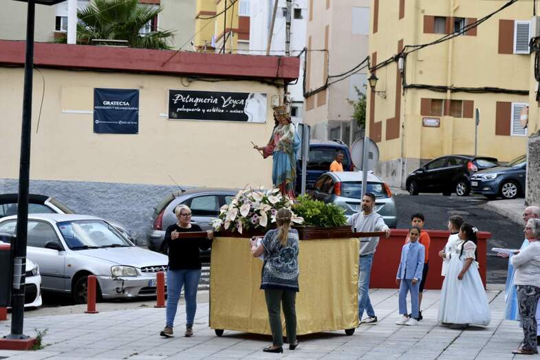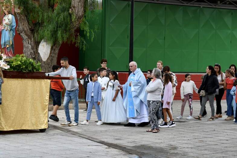 Tras los actos eucarísticos, la talla de María Auxiliadora salía en procesión por el periplo de la plaza de San José acompañada de los niños de primera comunión del barrio y un nutrido grupo de feligreses.