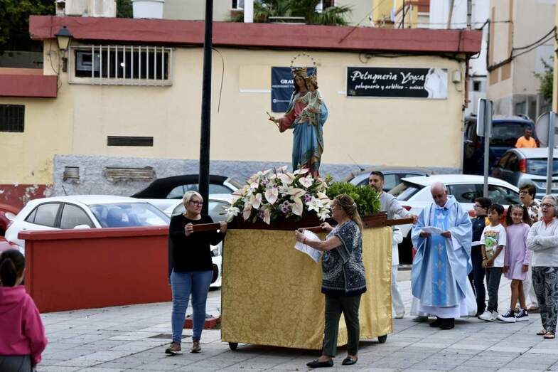 A las 18.30 horas, el párroco de la zona, el sacerdote Juan Santiago, oficiaba una solemne misa en honor de la imagen mariana.