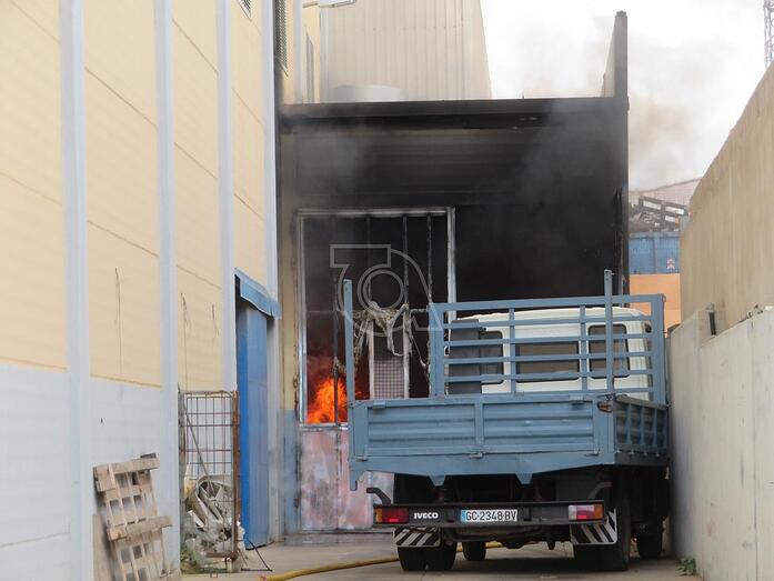 Hasta dos dotaciones de bomberos se desplazaron desde el parque zonal de La Garita para intervenir en este incendio que se originó en las instalaciones de la empresa Carrocerías Juan Suárez, en la calle Ebanista de este complejo industrial.