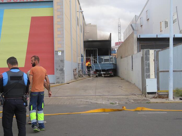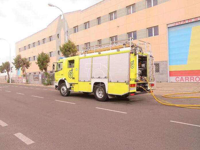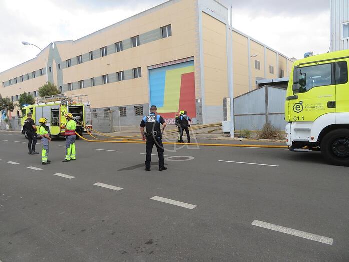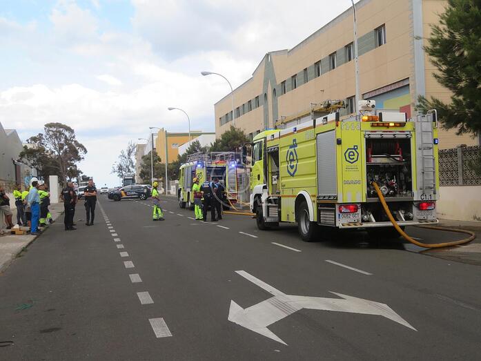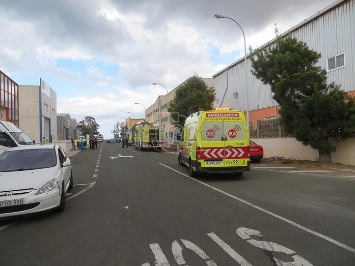 También un vehículo patrulla de la Policía Local y dos de la Policía Nacional y, de manera preventiva, una ambulancia del Servicio de Urgencias Canario (SUC). No hubo que lamentar daños personales porque la industria estaba cerrada en el momento que se originó el siniestro.
