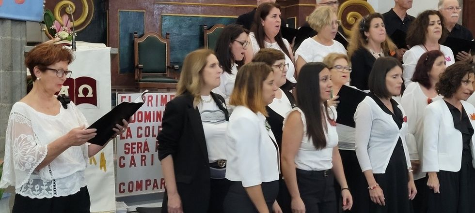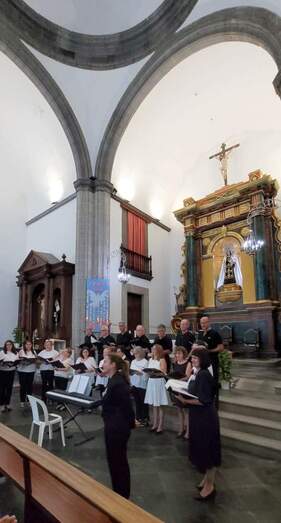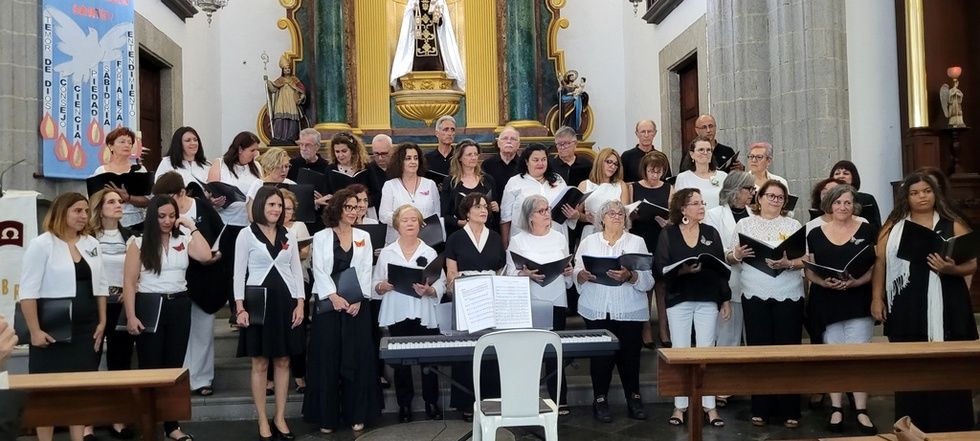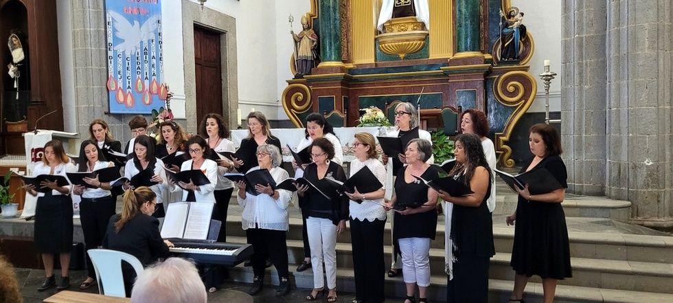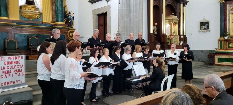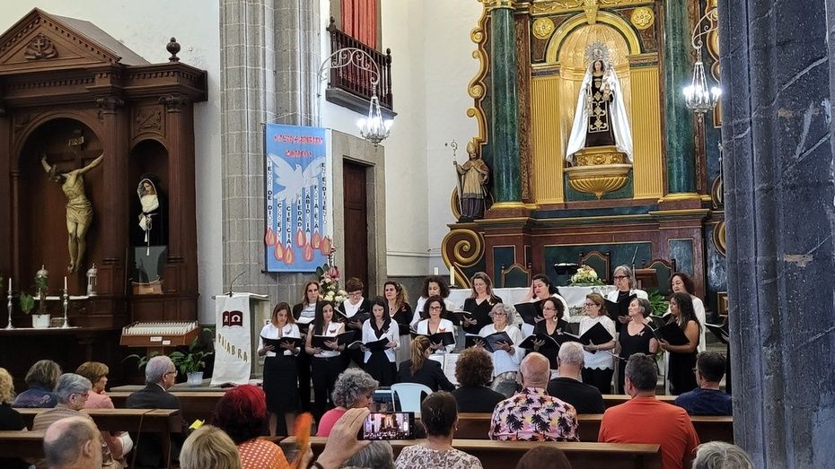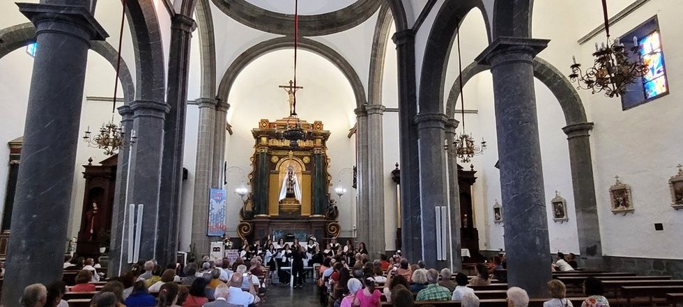 Hoy participamos de la expresión artística gracias a las voces de estas dos agrupaciones corales que elevaron el fruto de su esfuerzo y vocación musical en torno a las imágenes que nos acogen estas naves, entre otras, la talla del Santo Patrono San Gregorio Taumaturgo, obra del imaginero guíense Luján Pérez, Nuestra Señora de los Dolores, obra del imaginero teldense Silvestre Bello, talla de la Virgen del Carmen, y la contemporaneidad en su trabajo del artista José Arencibia Gil en la composición del altar de Nuestra Señora del Perpetuo Socorro.