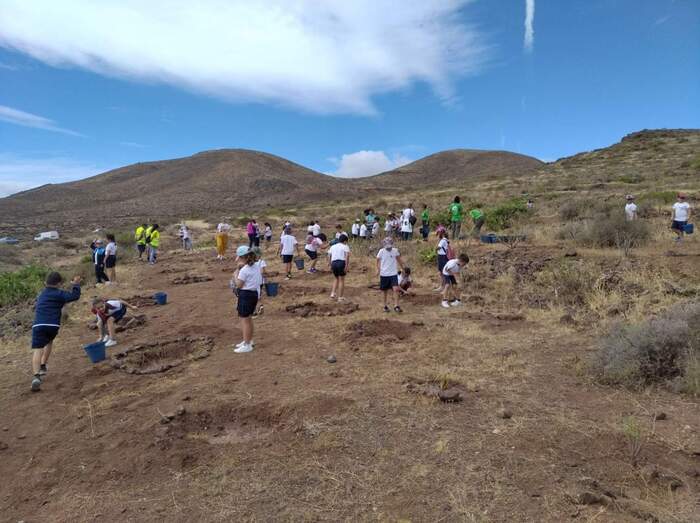 El edil de Medioambiente, Álvaro Monzón, explica que durante la mañana tuvieron lugar tareas de riego y de repoblación con especies canarias como retama blanca, guaydiles, acebuches y lentiscos, entre otras especies.