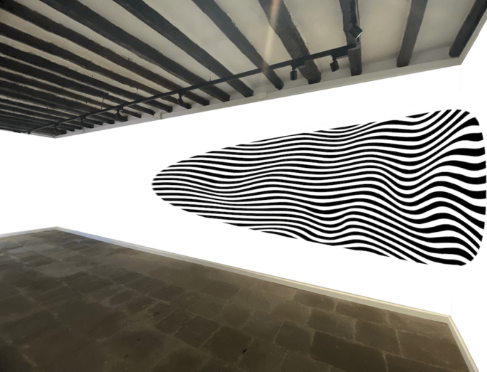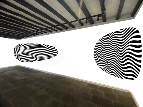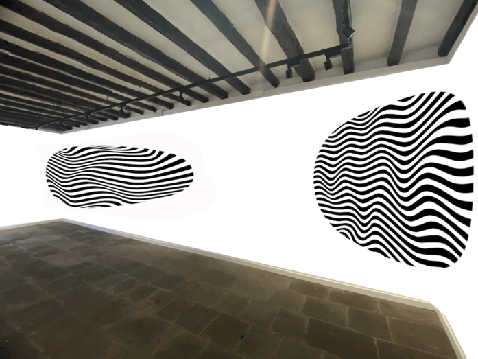 “La idea es deformar las líneas de la imagen sobre la pared para que, al ser observada sólo desde un punto de vista concreto, haya una lectura legible”, explican Cruz y Monzón, que firman sus trabajos visuales bajo la sinergia de la firma CNFSN+.
