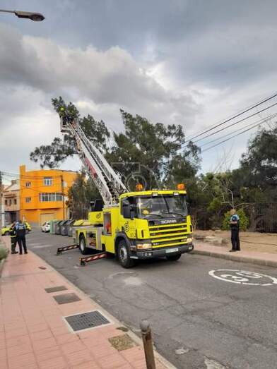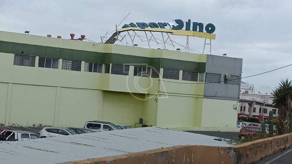 Por otro lado, parte del letrero luminoso emplazado en la cubierta del hipermercado de Hiperdino próximo al Cruce de Melenara se ha desplomado, hecho que se produjo esta tarde sin generar daños personales. La zona ha sido acordonada.