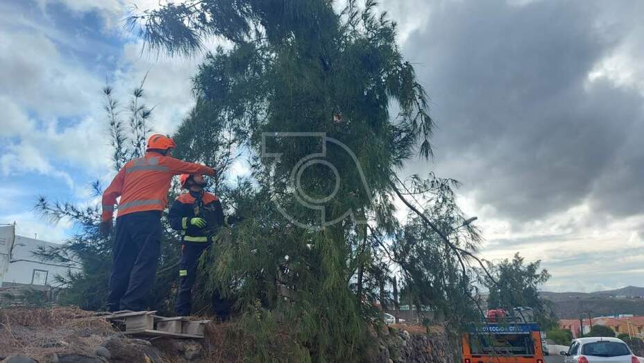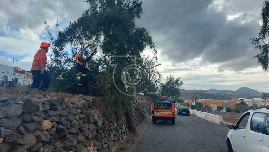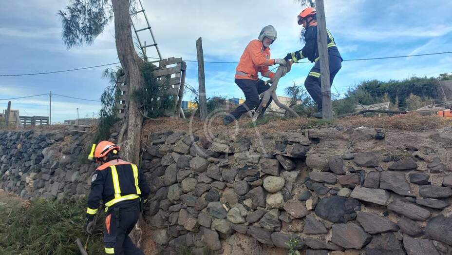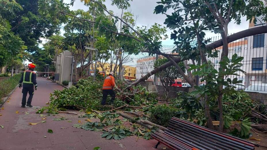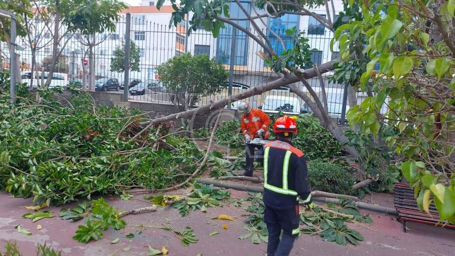 Hasta el momento, las incidencias por lluvia y viento son escasas. En Tenerife se han registrado cinco incidentes como caídas de piedras, de un poste de la luz o de la copa de una palmera en zonas de Arona, Guía de Isora, Fasnia y Santiago del Teide.