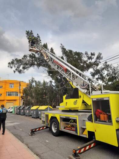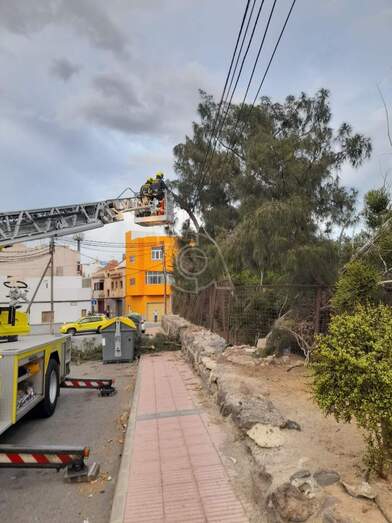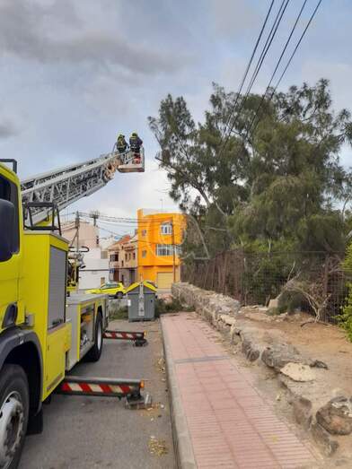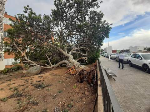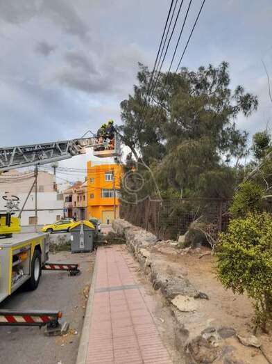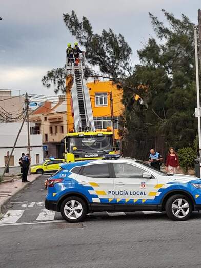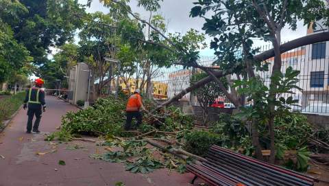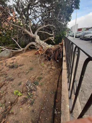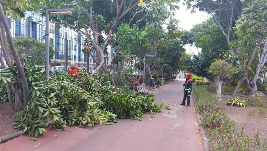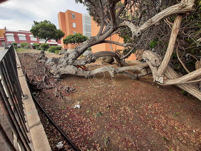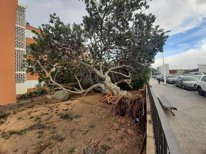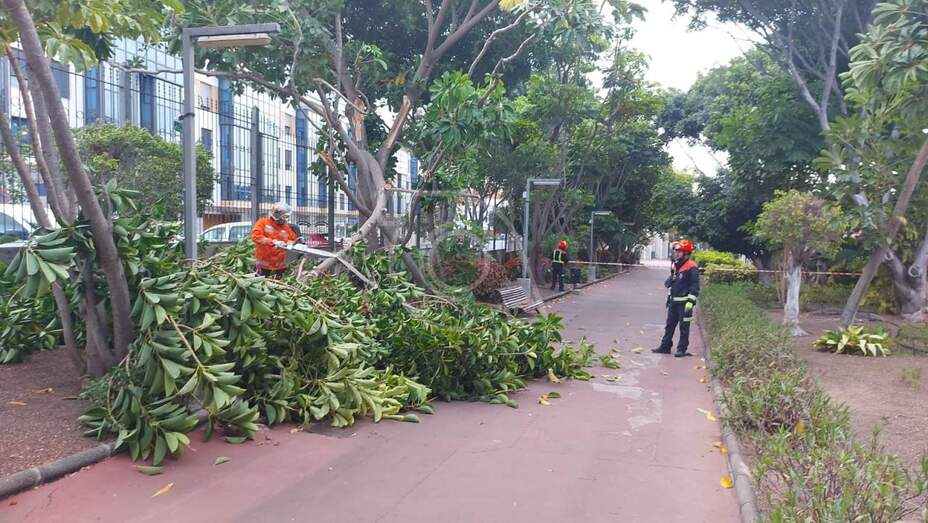 También se ha desgajado una rama de uno de ejemplares arbóreos que están en el parterre central de la vía de acceso a Salinetas desde la glorieta de Melenara.