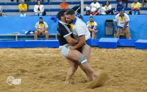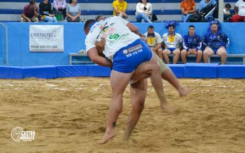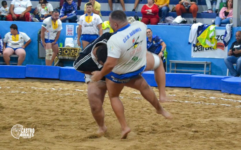 Momento de la luchada/Castro Morales.El club teldense Castro Morales venció este viernes a domicilio al CL Unión Agüimes, campeón de la liga, por 8-12, merced a una remontada en la segunda parte de la luchada correspondiente a la 14ª jornada de la XLIV Copa Fundación La Caja de Canarias de la categoría sénior.