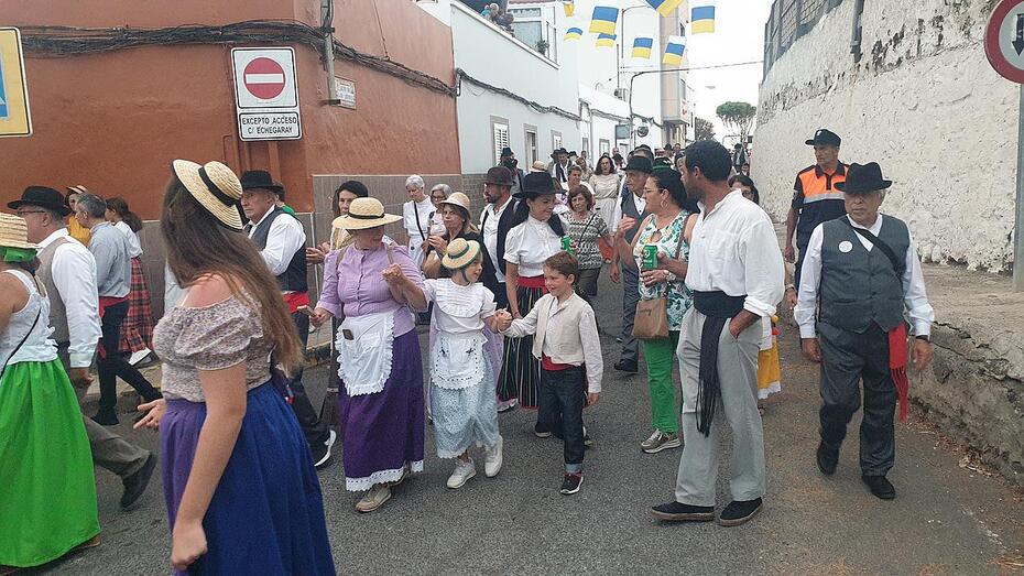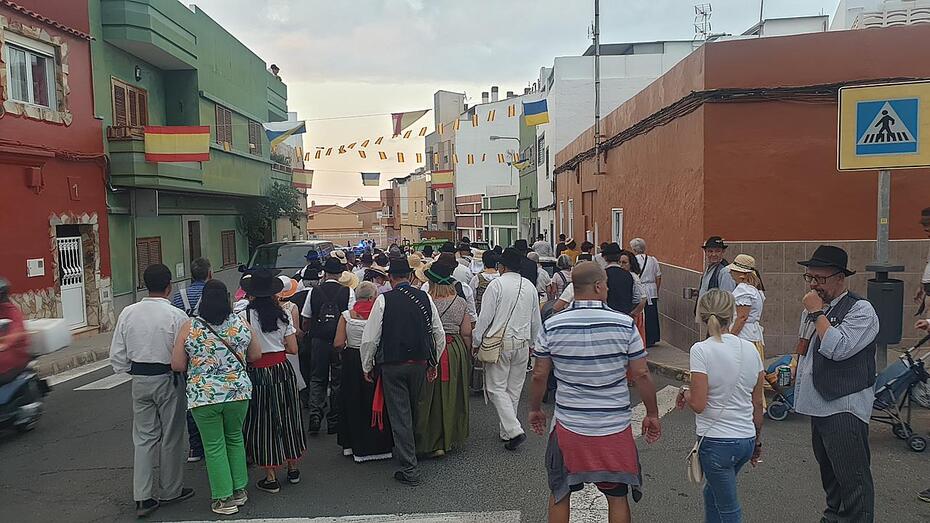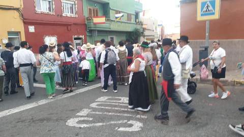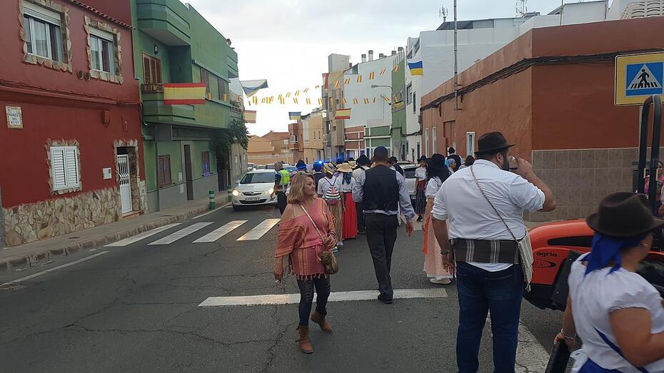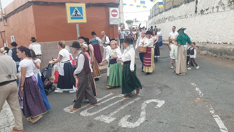 El desfile popular contó con una nutrida participación de vecinos de la zona y de otros procedentes de La Viña, San José de Las Longueras y La Higuera Canaria, así como de varias agrupaciones folclóricas.