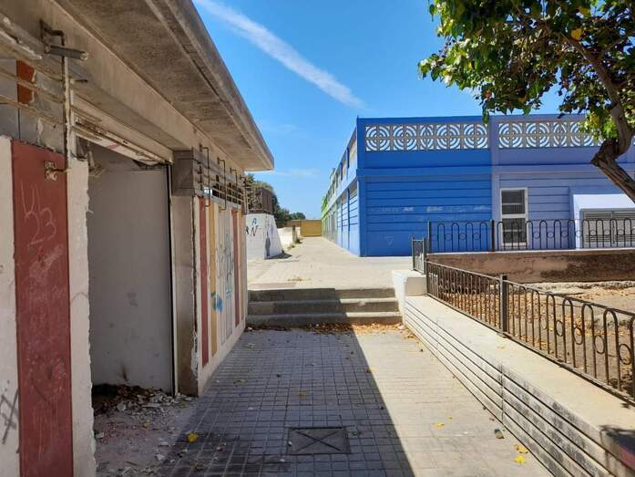 El equipamiento está situado al final de la rambla central de este complejo residencial de viviendas de promoción pública y ha sido foco de varios incendios y lugar de refugios de jóvenes e indigentes, circunstancias que lo han destrozado por completo.