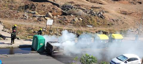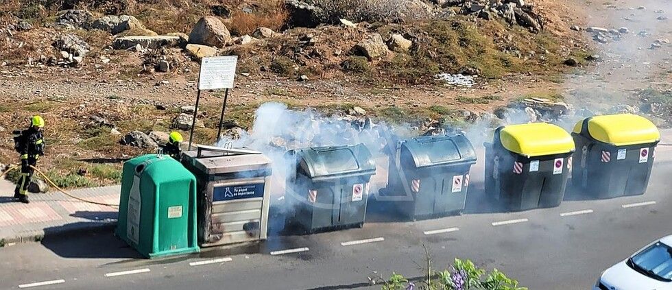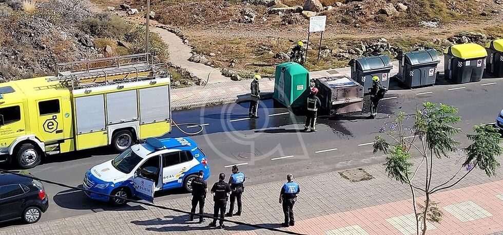 Bomberos sofocan el incendio de un contenedor en el casco de Telde