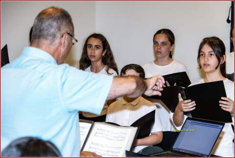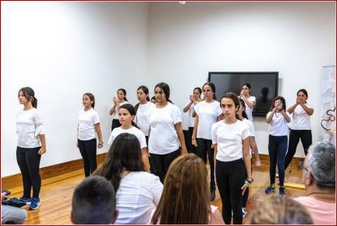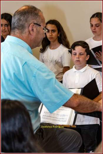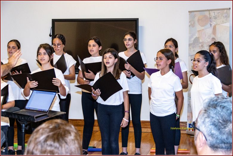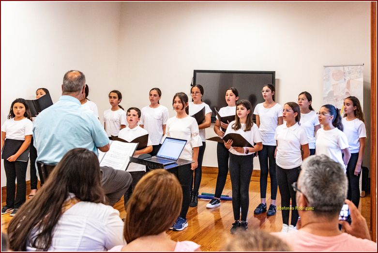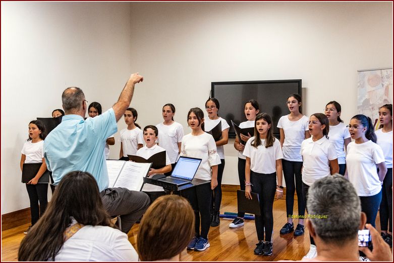 El coro, compuesto por menores de edades comprendidas entre los 9 y los 12 años y que se encuentra enmarcado dentro de la Escuela Municipal de Folklore de Telde, se encontraba realizando ejercicios de vocalización antes de su actuación.