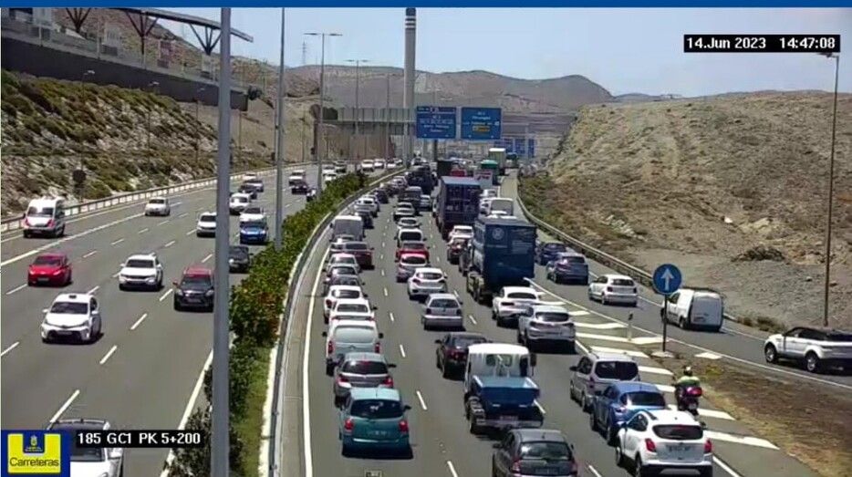 La circulación de vehículos en la GC-1 entre Telde y Las Palmas de Gran Canaria está registrando importantes retenciones en el tramo que discurre del Valle de Jinámar a la potabilizadora, a la altura del PK 5+700, según ha informado el área de Carreteras del Cabildo.