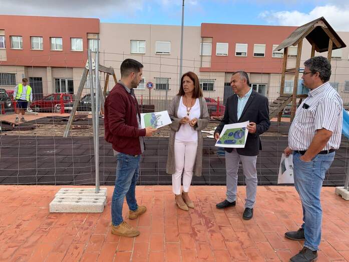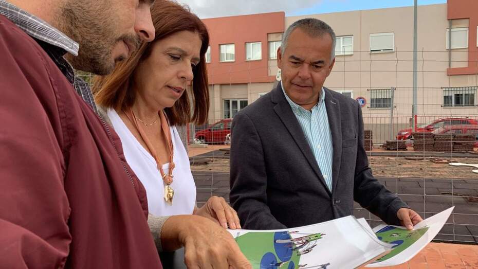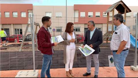 La alcaldesa en funciones, Carmen Hernández, y el edil en funciones de Parques y Jardines, Álvaro Monzón, visitaron este espacio donde ya se están desmontando los juegos y el pavimento para comenzar con las labores de cimentación con hormigón para ampliar la zona de recreo y el área de seguridad.