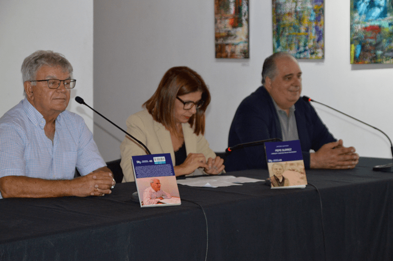 Tras la presentación del titular de Cultura, Juan Martel, y de unas palabras de la alcaldesa Carmen Hernández, el autor y el prologuista del libro, Antonio Quintana y Daniel Barrero, mantuvieron una conversación en formato entrevista sobre la figura de Pepe Suárez, nacido en 1934 en Los Arenales del barrio de Lomo Magullo, que trabajó en el departamento de Personal del Ayuntamiento de Telde desde 1983 hasta que se jubiló, llegando a ser director general de esta institución municipal.