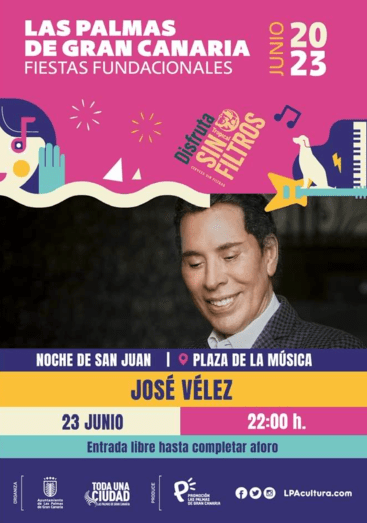 El cantante teldense José Vélez actuará en la capital grancanaria en la Noche de San Juan. El reputado artista internacional ofrecerá un concierto gratuito, a partir de las 22.00 horas, en la Plaza de la Música.