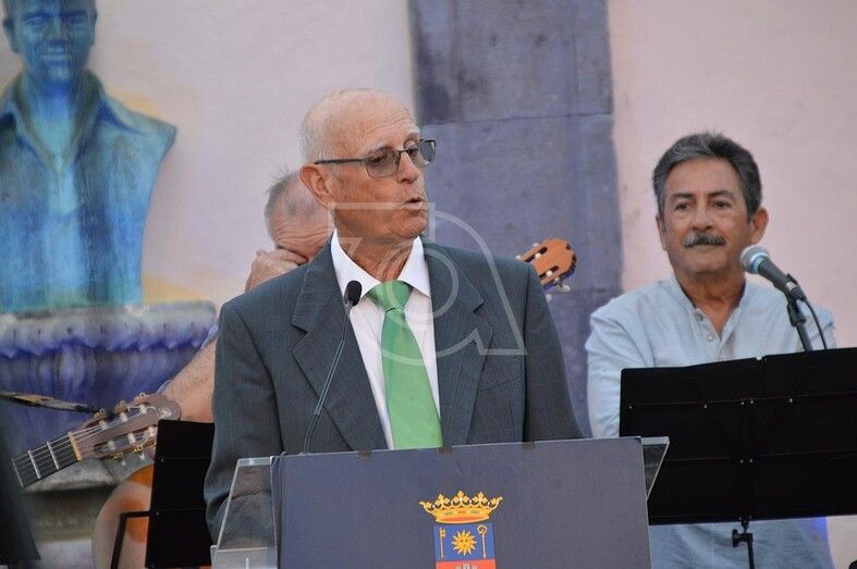 A sus 74 años de edad, Miguel Alemán pregonó las fiestas de su barrio, el de San Juan, al que lleva vinculado toda una vida. De hecho, este folclorista, hoy presidente del grupo Cendro, y gran aficionado también a la bola canaria, vino al mundo a poco más de 100 metros de la plaza de San Juan.