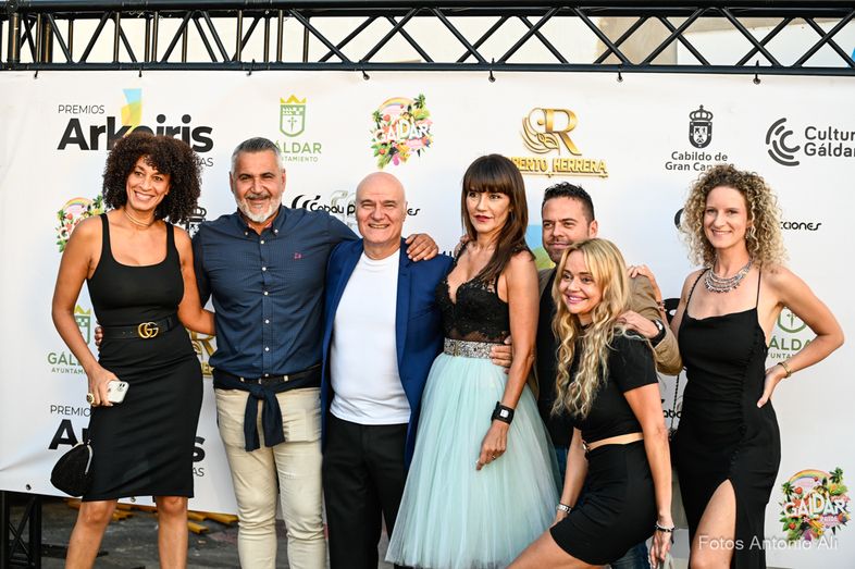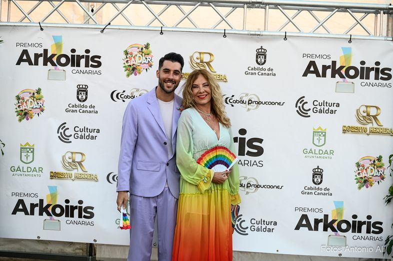 El Recinto Cultural de La Quinta ha acogido la segunda edición de los Premios Arkoiris Canarias, un reconocimiento a profesionales, empresas y colectivos por su labor de divulgación y defensa de los derechos del colectivo LGTBIQ+ en Canarias. Hasta 32 categorías, siete más que en la pasada edición, un salto de calidad para unos premios que se consolidan dentro del programa del Gáldar Pride, en una emocionante gala presentada por el periodista Roberto Herrera.