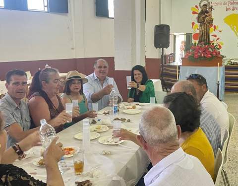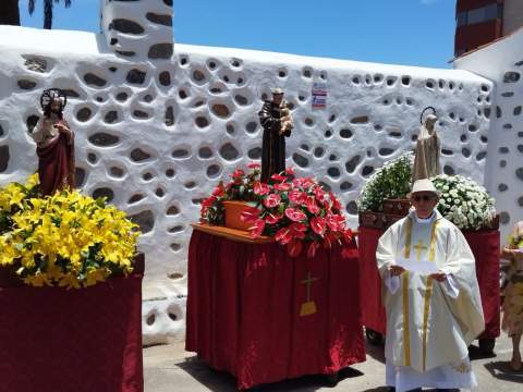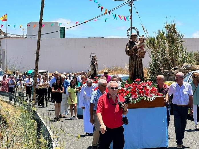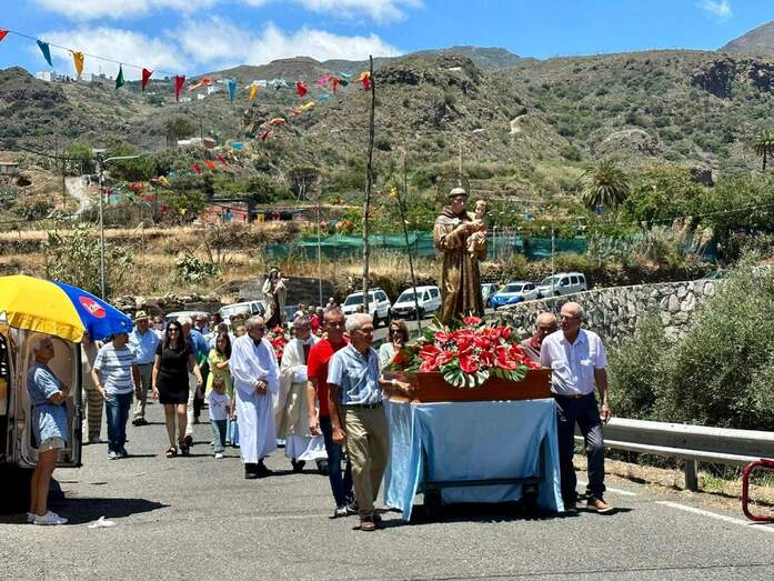 El pago de medianías de Los Arenales, fronterizo entre Telde y Valsequillo, celebró este domingo el día grande de sus fiestas en honor de San Antonio de Padua con misa y procesión y un encuentro vecinal de confraternización en el que participaron el alcalde Valsequillo Francisco Atta, varios de sus ediles y el concejal teldense Juan Martel, vecino del sector.