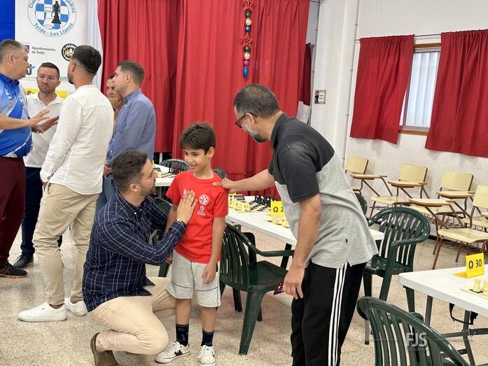 El evento deportivo se celebró en el Colegio Público San Juan y hasta allí se acerco el nuevo alcalde de la ciudad, Juan Antonio Peña, que compartió un rato, en compañía de miembros de su equipo de Gobierno, con integrantes de la organización y jóvenes promesas del ajedrez teldense participantes en el torneo.