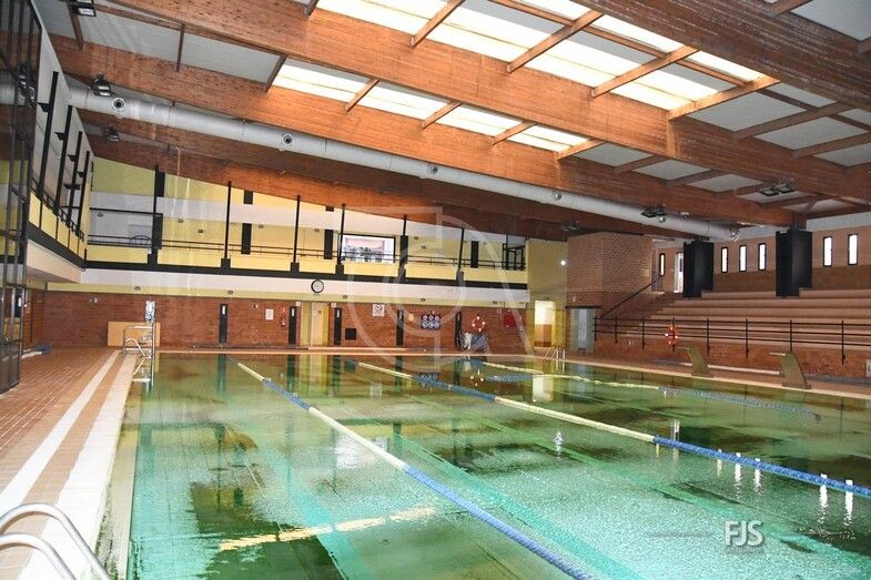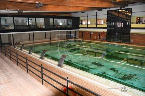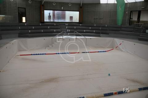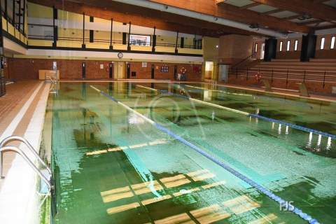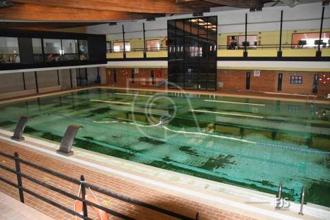 El primer objetivo, la piscina grande del polideportivo