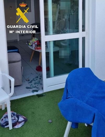 Los huéspedes se encontraron el cristal de la puerta de la terraza fracturado con una piedra y el interior completamente revuelto, percatándose de que les habían sustraído dinero en efectivo, cartones de tabaco, productos de perfumería y un teléfono móvil.