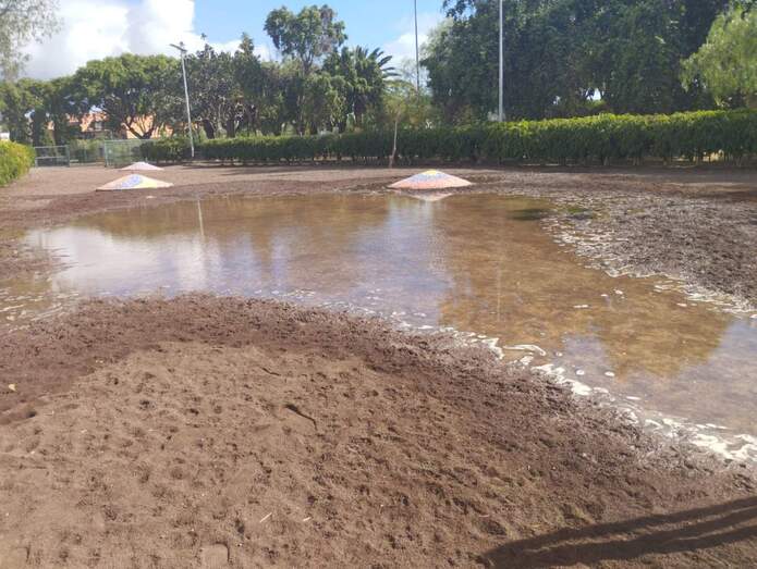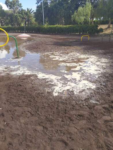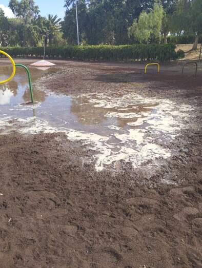 El pipican del parque urbano de San Juan se encuentra desde hace varios días bajo el agua a consecuencia de una fuga que, según denuncian los usuarios, no es la primera vez que sucede.