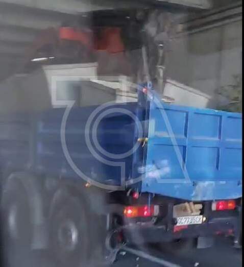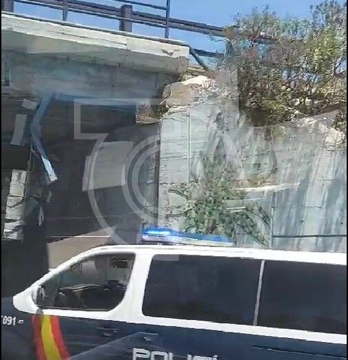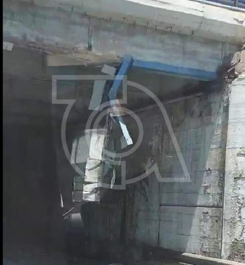 El impacto de la grúa del camión provocó desprendimientos de la estructura del paso.
