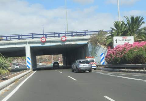 Un camión grúa ocasionó desperfectos esta tarde a la parte baja de estructura del puente de la autovía GC-1 sobre la Avenida del Cabildo al chocar contra ella cuando circulaba en dirección hacia el casco urbano de Telde.