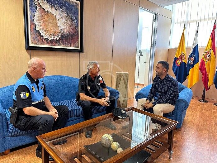 Este mañana recibió en la Alcaldía al comisario jefe del Cuerpo Nacional de Policía en Telde, Guillermo León, con el que analizó, en compañía del jefe de la Policía Local, Félix Ramos, las necesidades del municipio en materia de seguridad ciudadana.