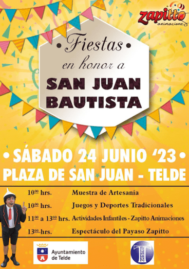 Por otra parte, el día grande de los fastos estará marcado por diversas actividades para todos los públicos. A las 10.00 horas tendrá lugar la tradicional muestra de ganado en el entorno del Puente de los Siete Ojos, en el Barranco Real de Telde. Además, desde esa misma hora se podrá disfrutar de la muestra de artesanía en la plaza de San Juan en donde también habrá juegos y deportes tradicionales.