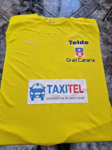 El color del equipaje es amarillo en su camiseta, con medias y pantalón azul marino. Una elección hecha como homenaje al equipo señero de la isla, recién ascendido a Primera División, la Unión Deportiva Las Palmas. En el pecho portarán el escudo de Telde y en el abdomen la publicidad de Taxitel, patrocinador de la cooperativa.