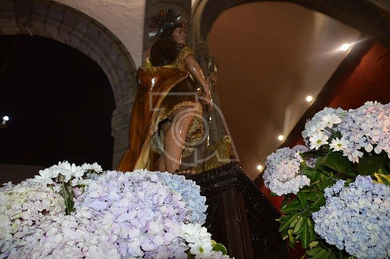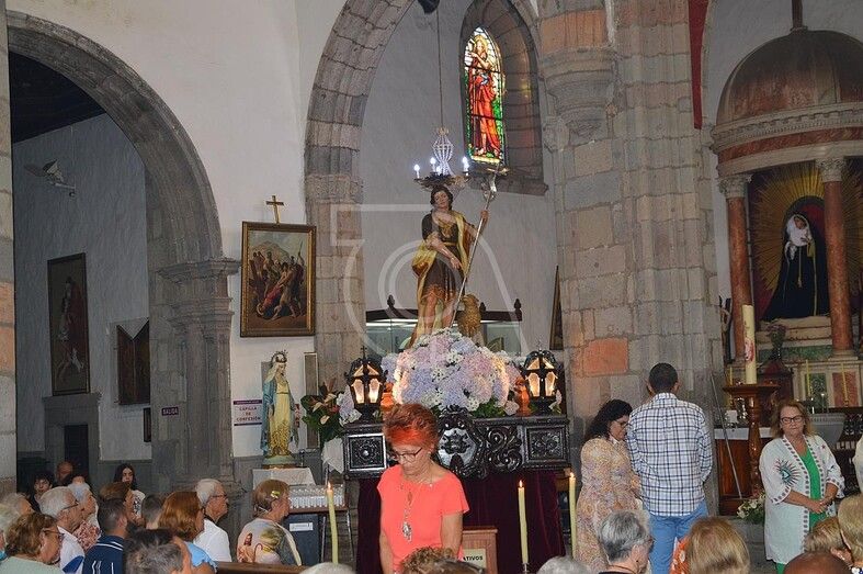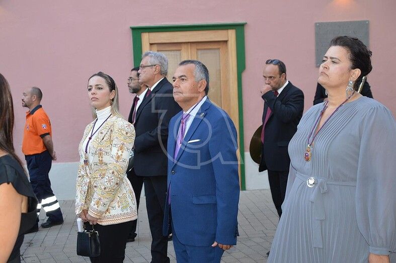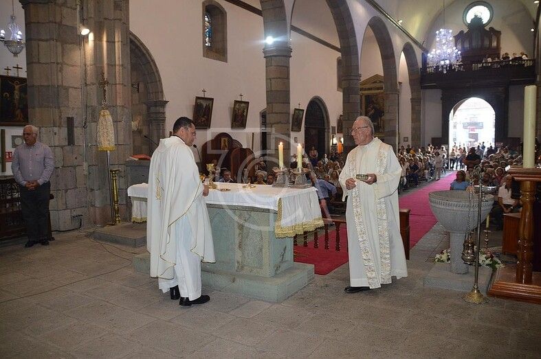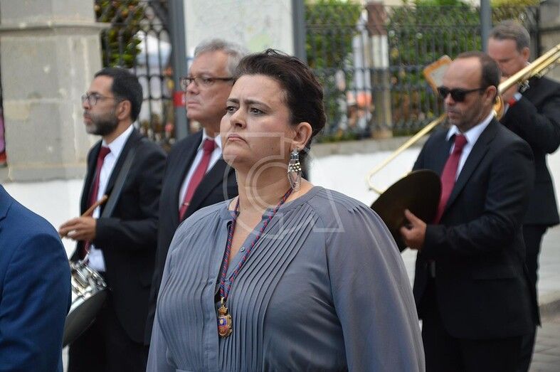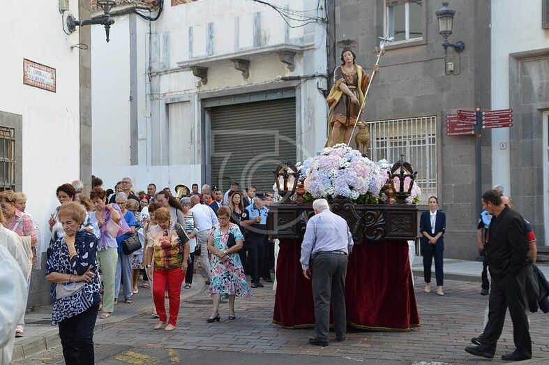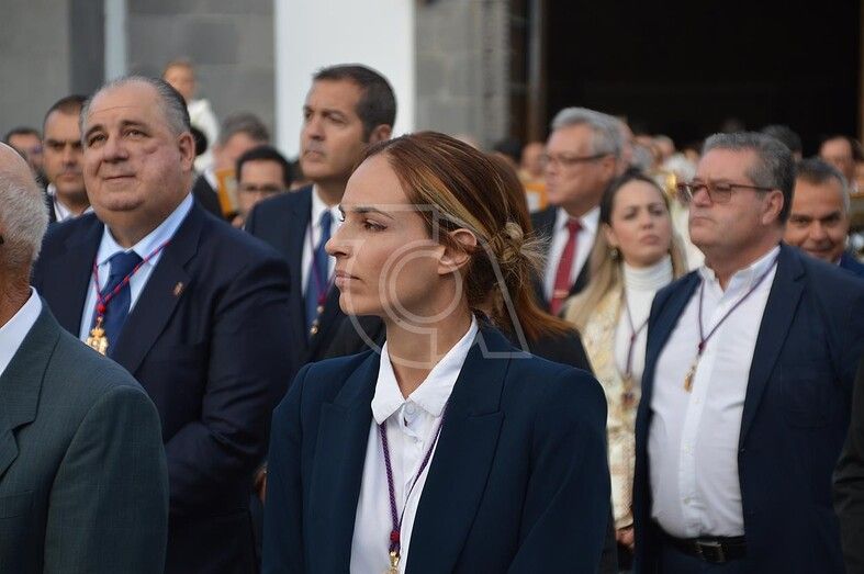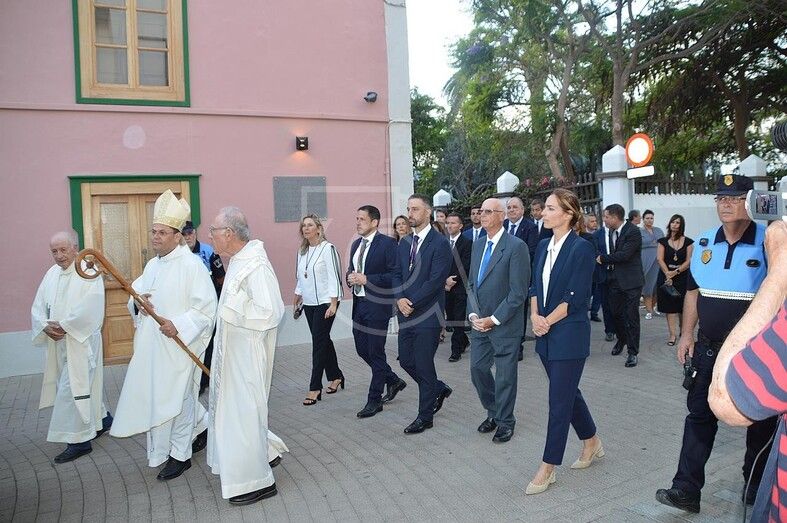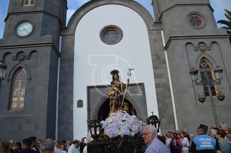 En la segunda procesión religiosa tras el parón de casi dos años y medio motivado por la pandemia, la venerada imagen asomaba por el pórtico principal de la Basílica de Telde pasadas las 20.15 horas, tras finalizar la solemne misa oficiada por el obispo auxiliar de la Diócesis de Canarias, Cristóbal Déniz, y el sacerdote y párroco José María Cabrera. La eucaristía estuvo amenizada por Mari Carmen Hernández y su coro.