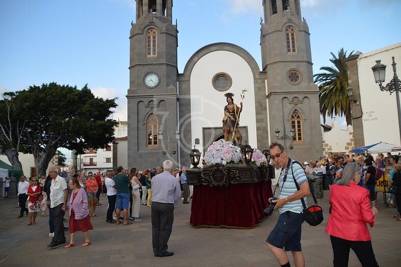Y tras poco más de una hora, después de procesionar por las calles Juan Carlos I, Conde de la Vega Grande, Duende, Plazoleta Marín y Cubas, Doramas, Los Sabandeños, Julián Torón y León y Castillo; la imagen de San Juan Bautista regresó a su templo.