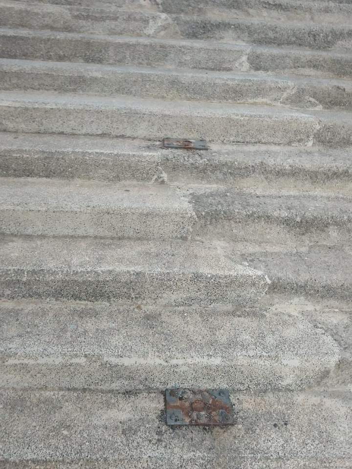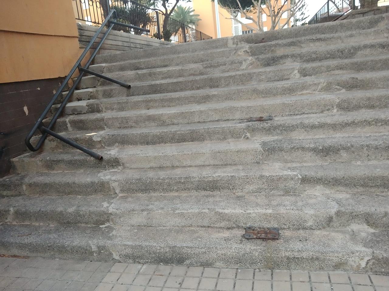 Es una pena el abandono de nuestro Ayuntamiento como se puede ver en estas escaleras del aparcamiento 8 de Las Remudas. El pasamanos está roto y tirado y es un peligro ya que los niños lo usan para jugar.