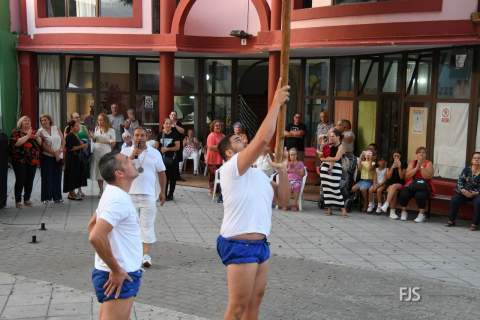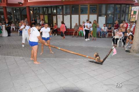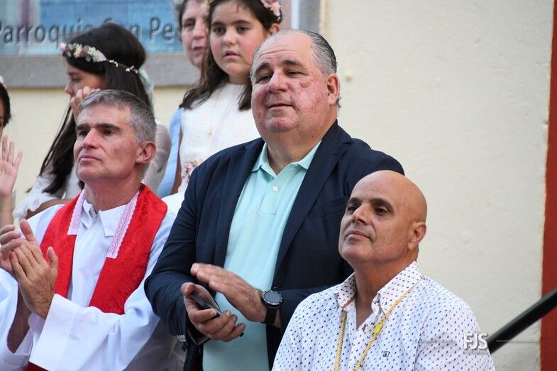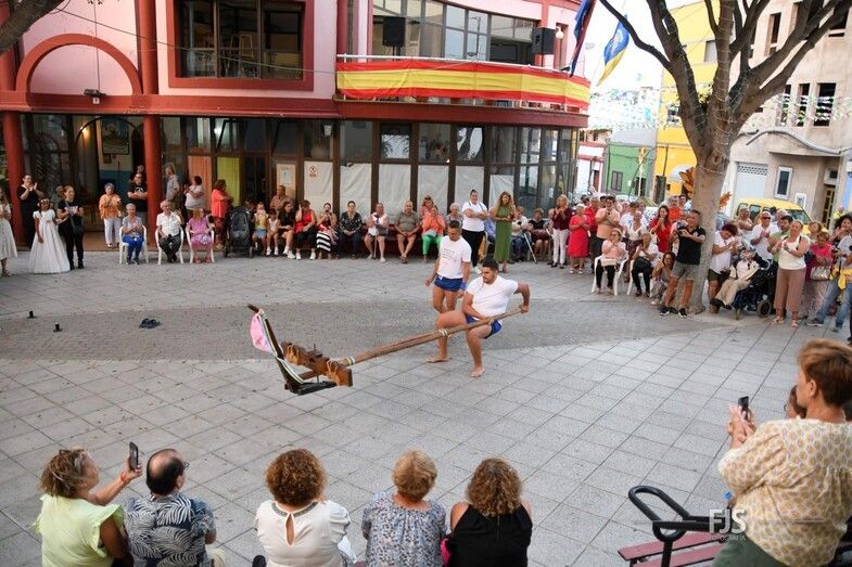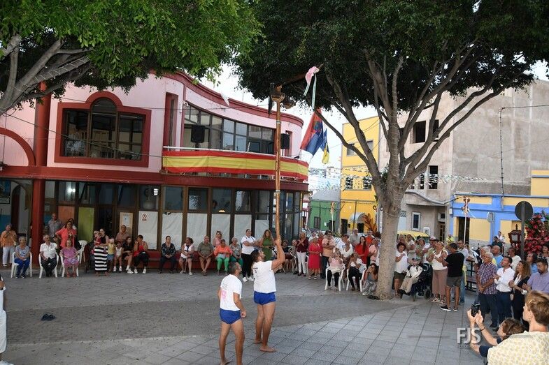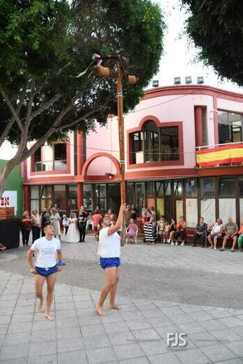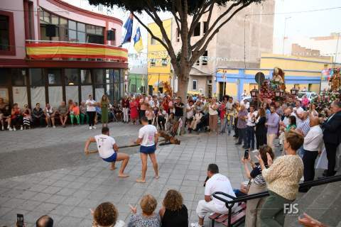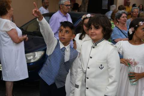 Un grupo de niños vestidos de Primera Comunión formó parte del cortejo procesional que partió y finalizó en el templo. En la plaza pública hubo un exhbición del levantamiento del arado por descendientes del legendario Joé Rodríguez Franco (1912-1991), conocido por el Faro de Maspalomas.