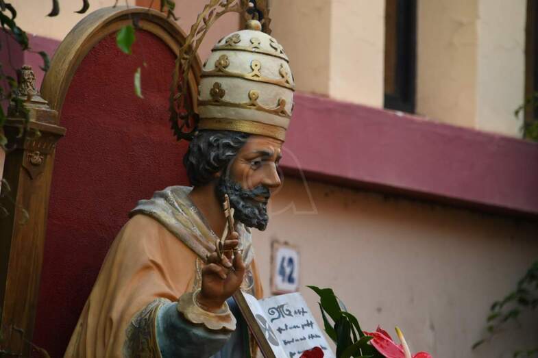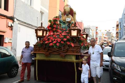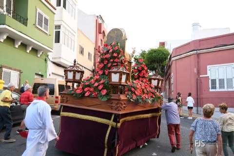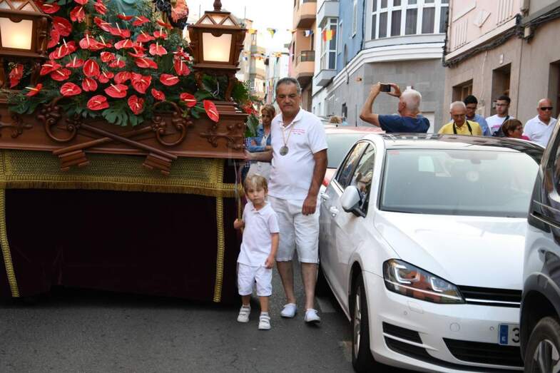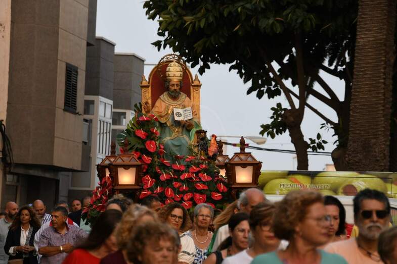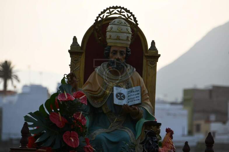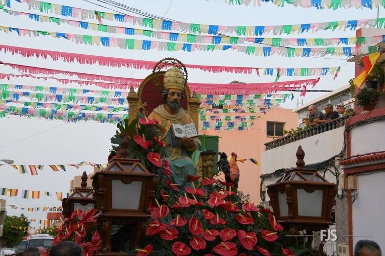 Con recorrido de costumbre, esta tarde-noche, después de la misa oficiada por el sacerdote Ricardo Miranda,  párroco de la zona, el populoso barrio de El Ejido procesionó por sus calles los tronos de su patrono San Pedro y de la Virgen, un desfile religioso que estuvo acompañado por la Banda Municipal de Música de Telde y con la presencia de autoridades locales encabezadas por el alcalde Juan Antonio  Peña.